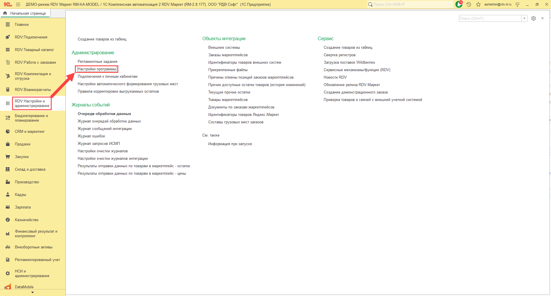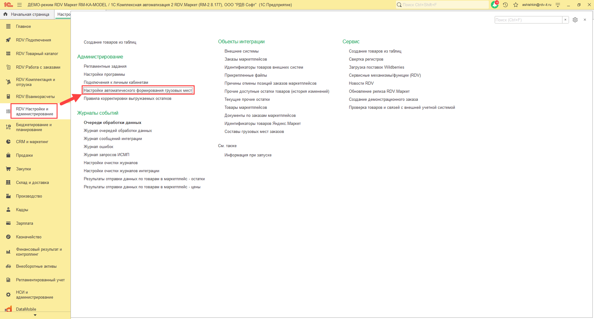 2. В меню "RDV Настройки и администрирование" перейти в "Настройки автоматического формирования грузовых мест":