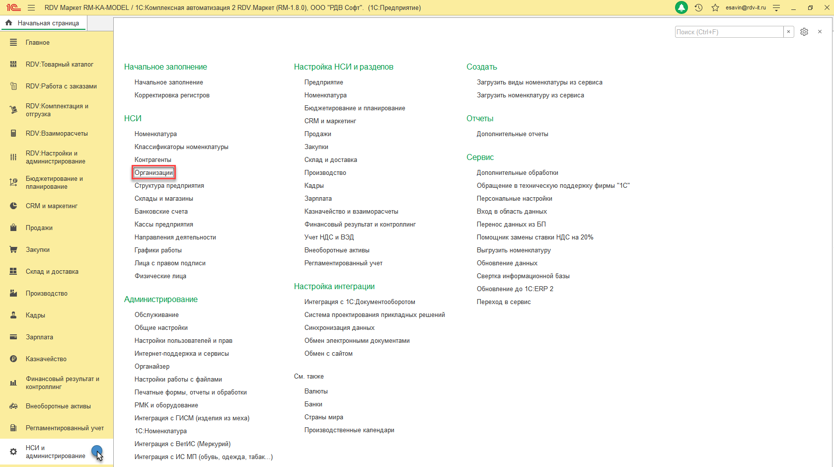 2. В меню "Организации" выбрать нужную (если их несколько) организацию.