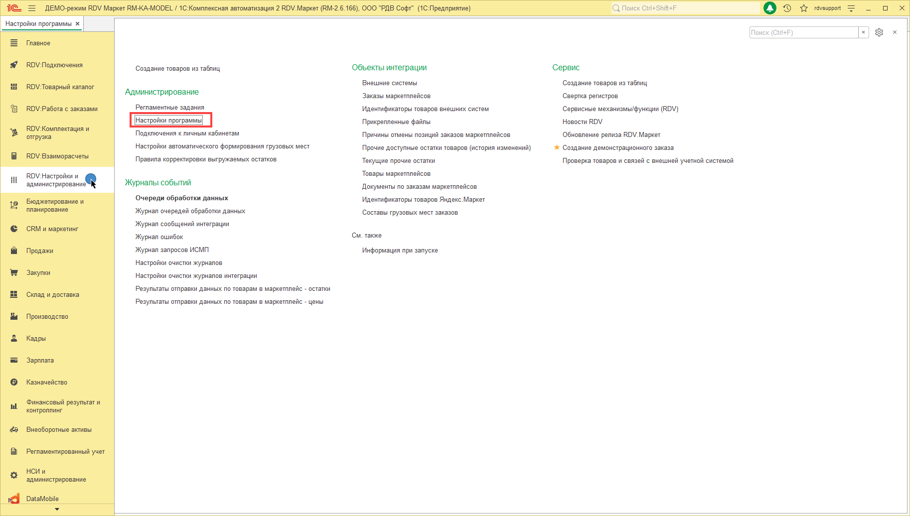 Перед началом работы с заказом FBO необходимо включить настройку для работы нового функционала по заказам в разделе "RDV:Настройки и администрирование" - "Настройки программы"
