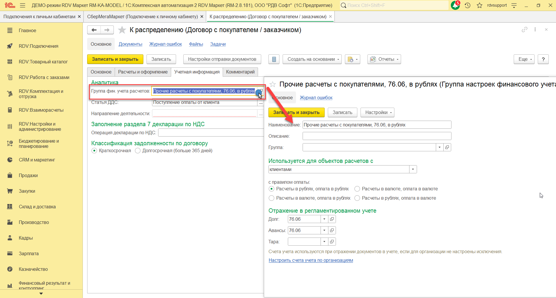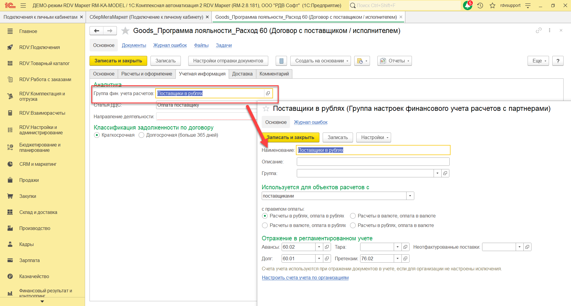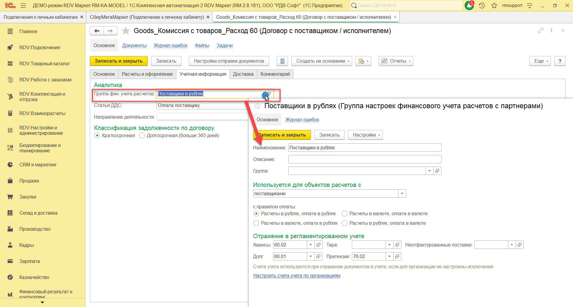 Нужно выполнить следующие настройки договоров для закрытия расчетов: