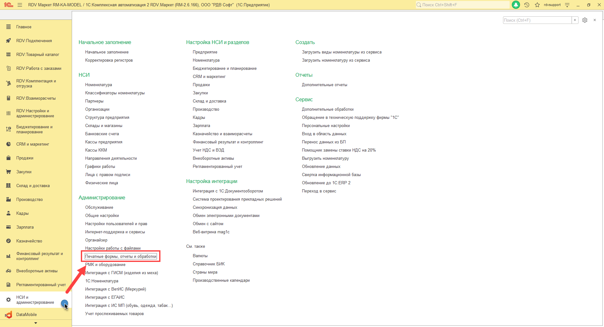 Настройка макетов этикеток выполняется в разделе "НСИ и администрирование" - "Печатные формы, отчеты и обработки" - "Макеты печатных форм":