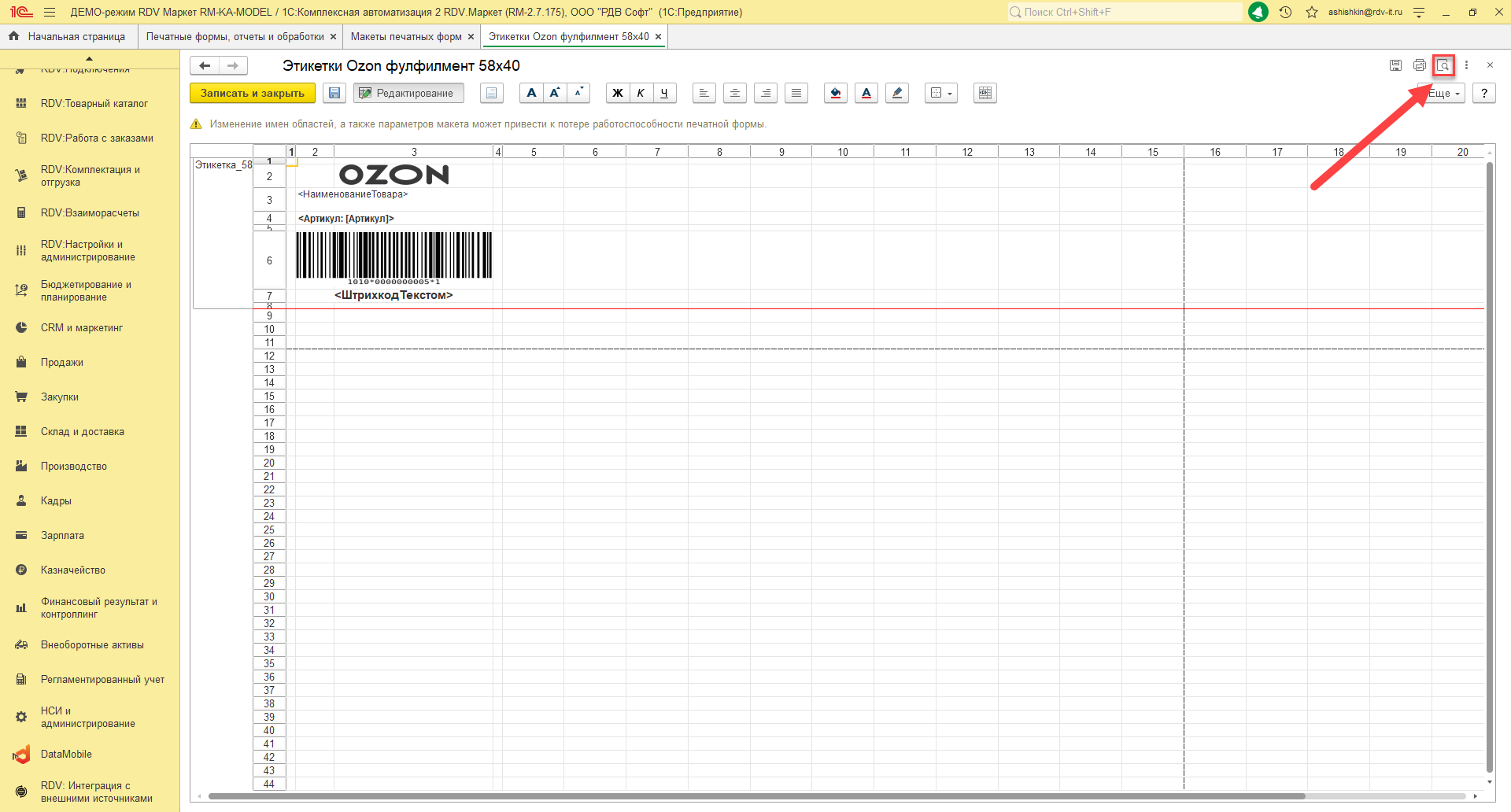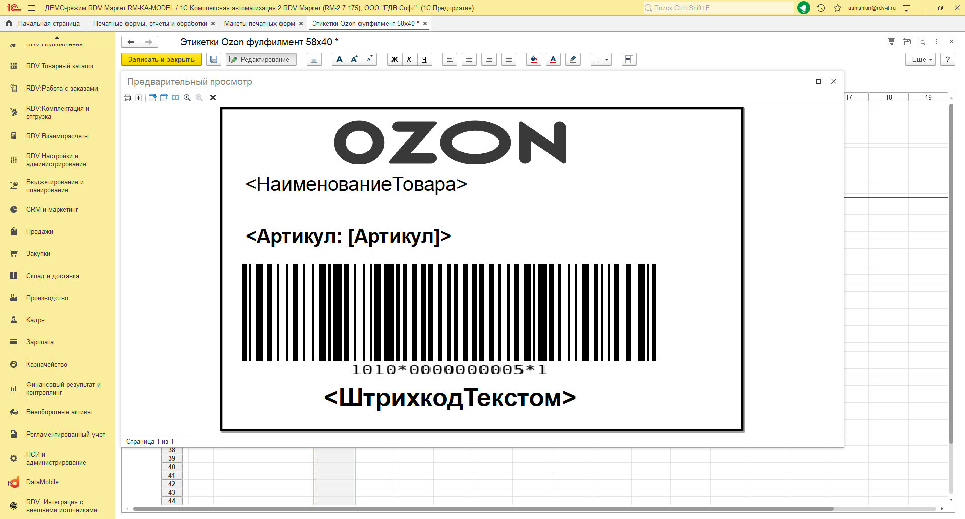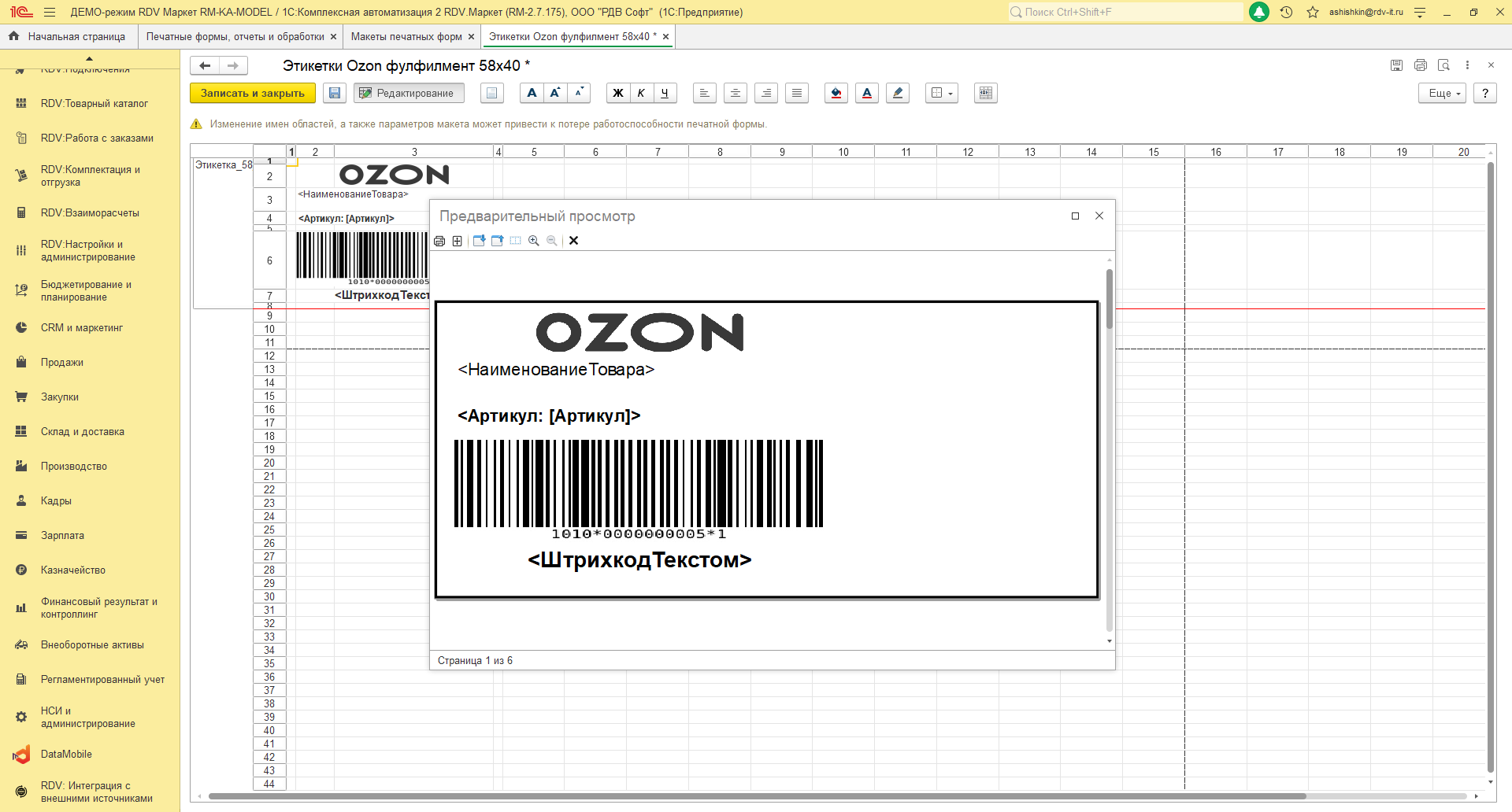 Название макета - "Этикетки Ozon фулфилмент 58x40"