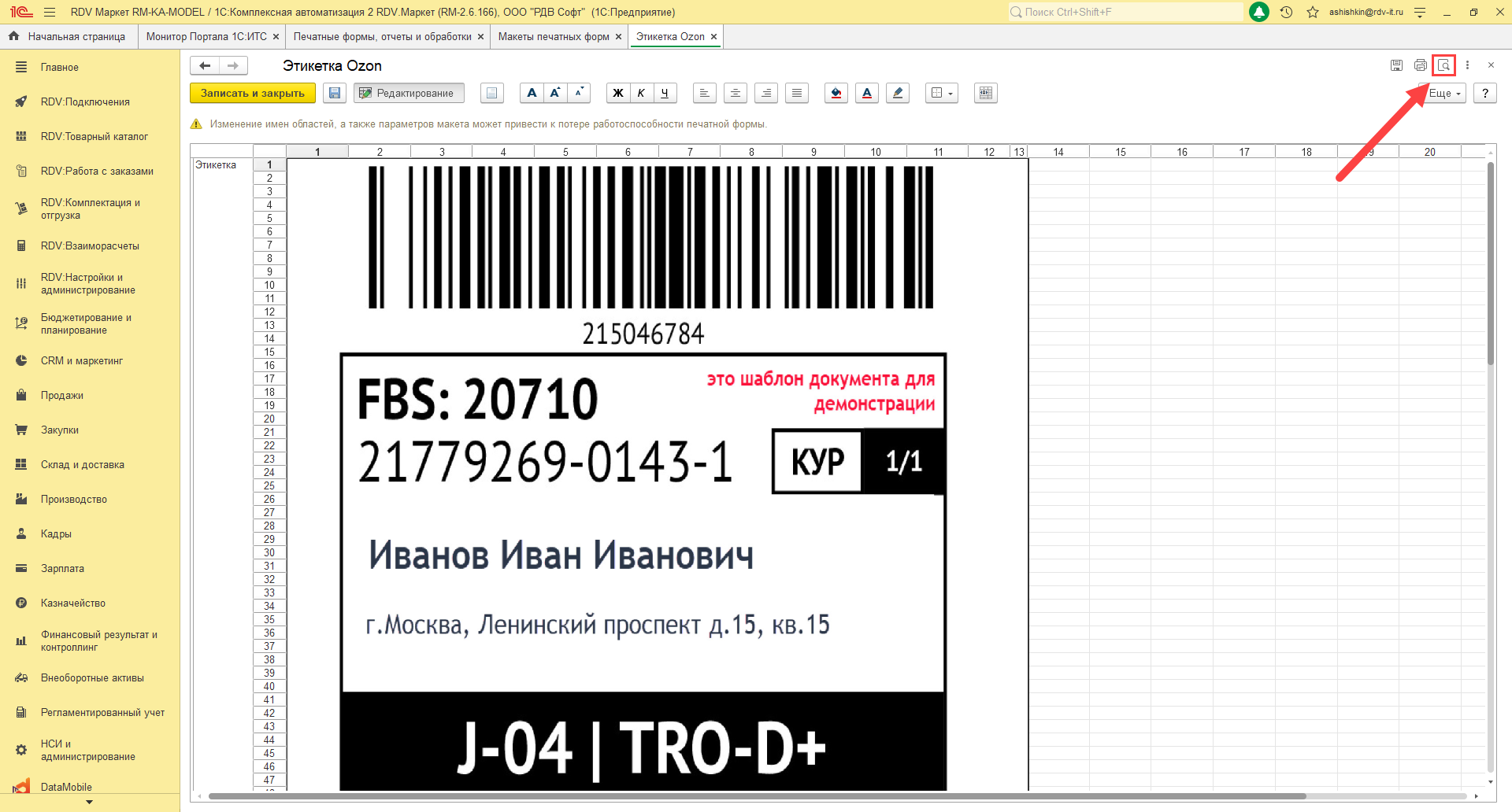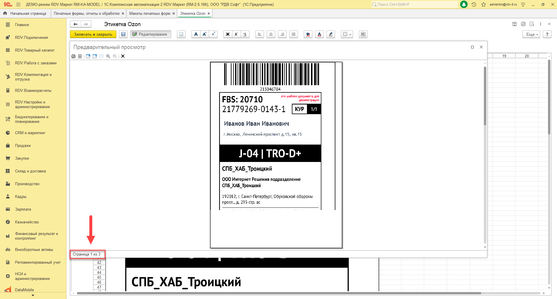 Далее проверяем - как выглядит этикетка после внесенных изменений, также через предварительный просмотр.