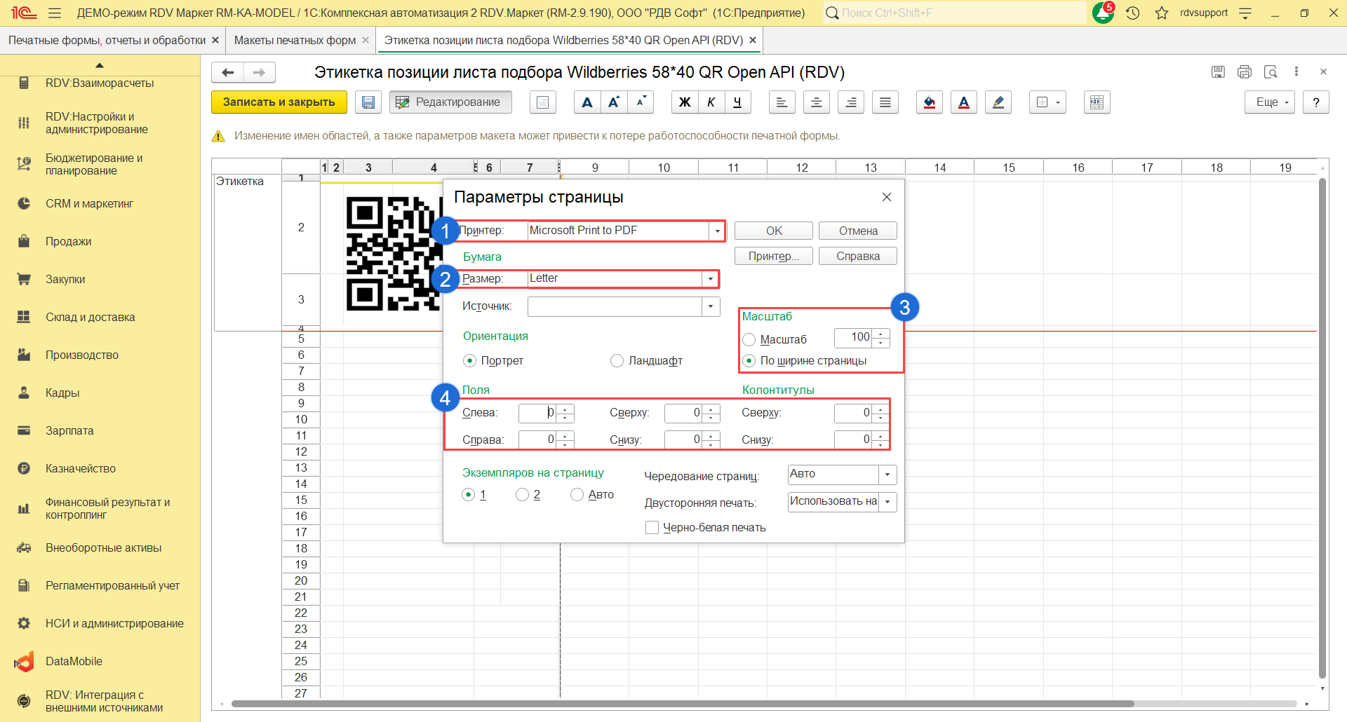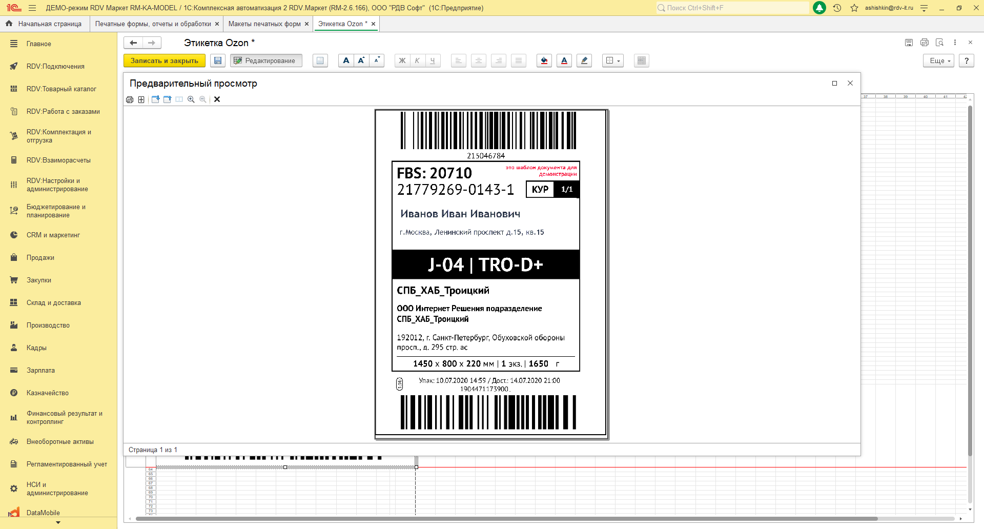 4. Настройка этикеток/печатных форм СберМегаМаркет
