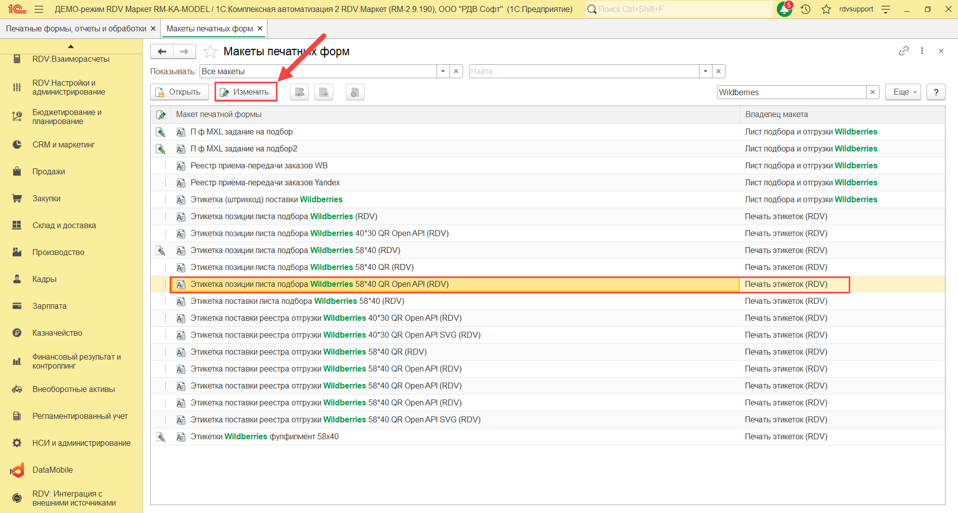 Название этикетки "Этикетка позиции листа подбора Wildberries 58*40 QR Open API (RDV)"