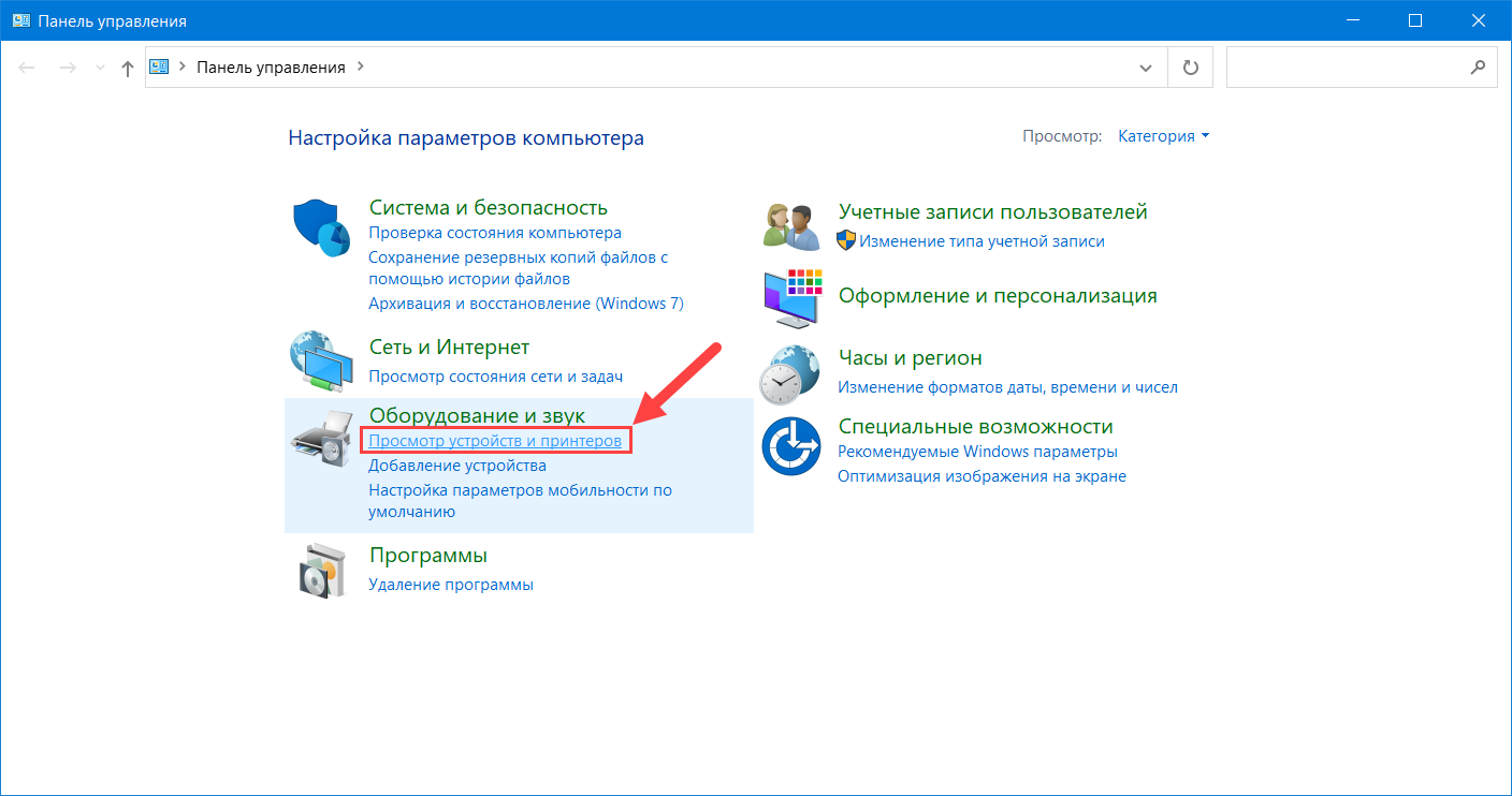 1. "Панель управления" - "Просмотр устройств и принтеров"