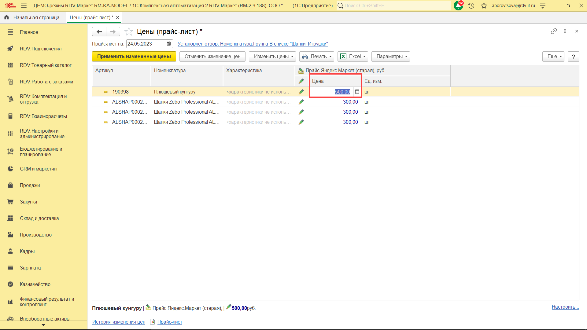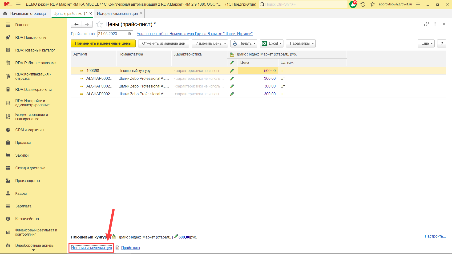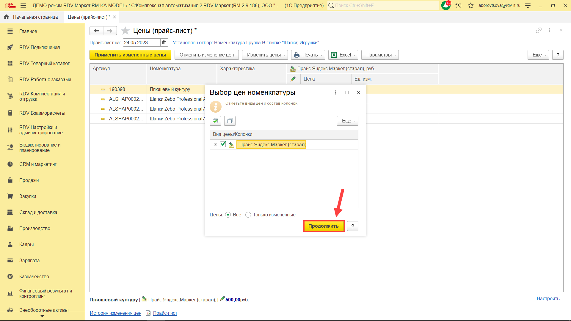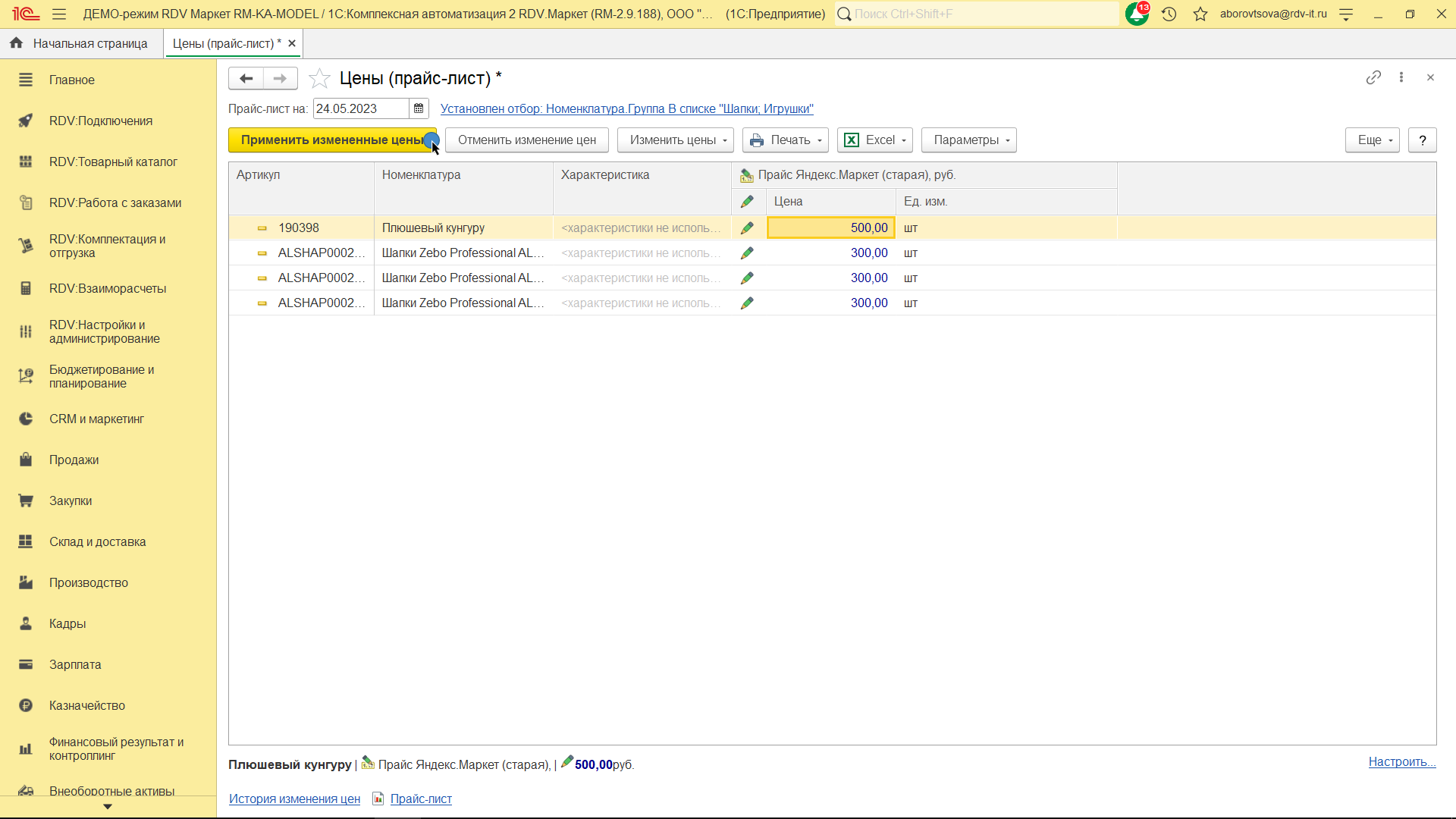 Далее нажмите на кнопку "Применить измененные цены".