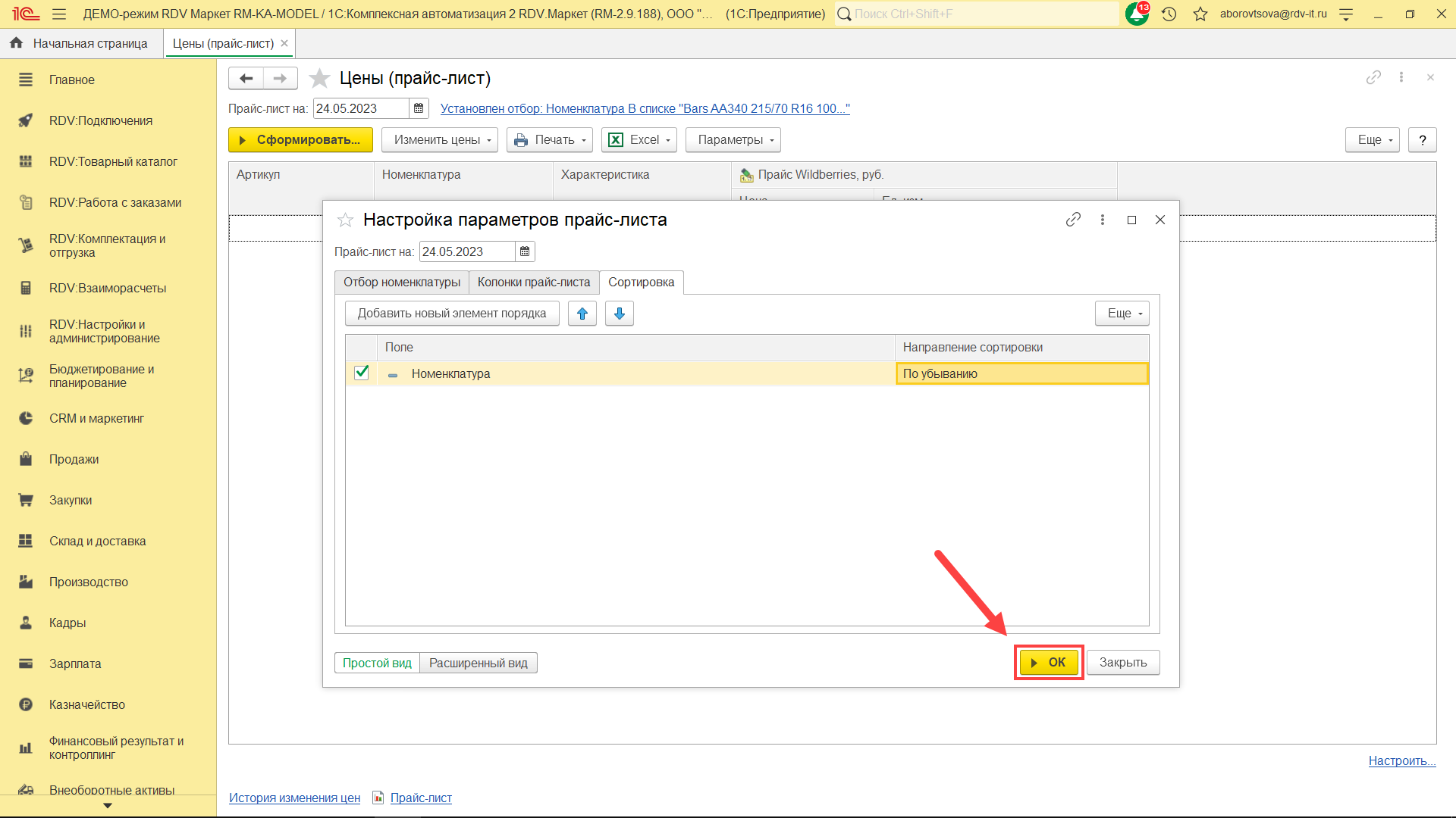 Для формирования прайс-листа нажмите на кнопку "ОК".