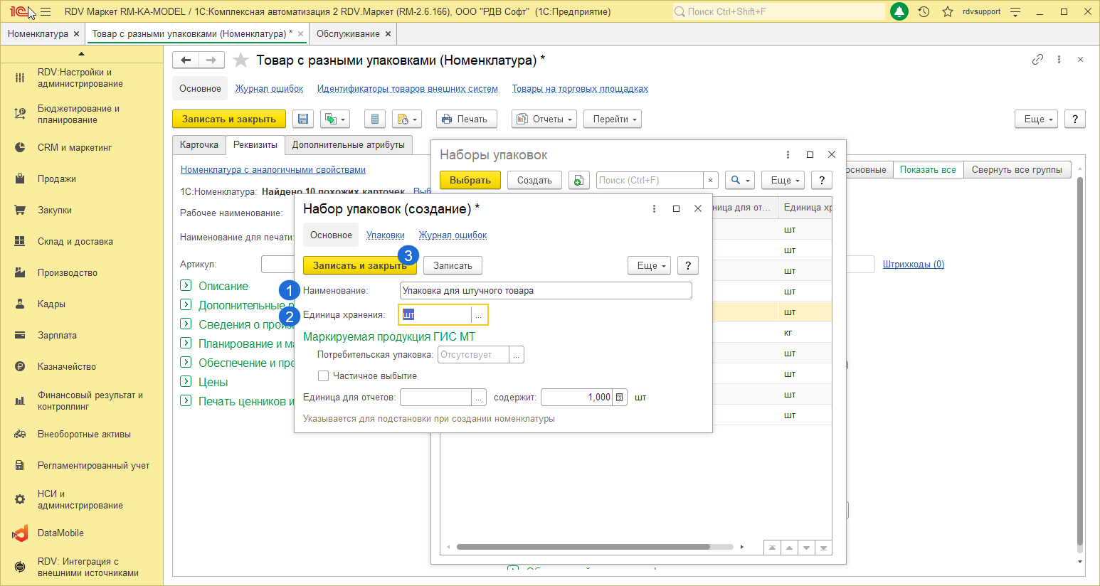 Создание упаковок для номенклатуры