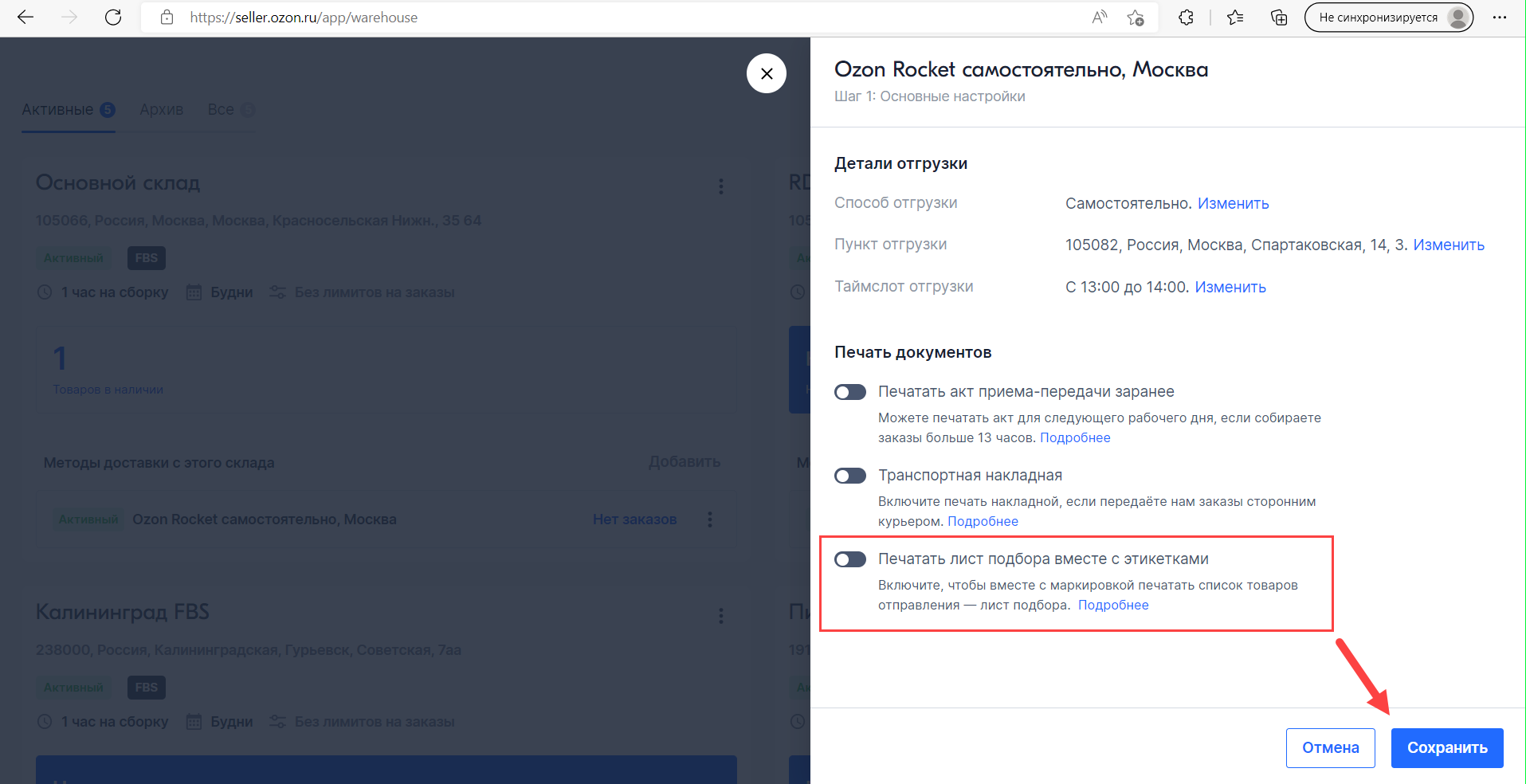 Если при печати этикеток грузовых мест Ozon у вас печатается лист подбора (вторая этикетка) и он вам не нужен, то его надо отключить в личном кабинете Ozon.