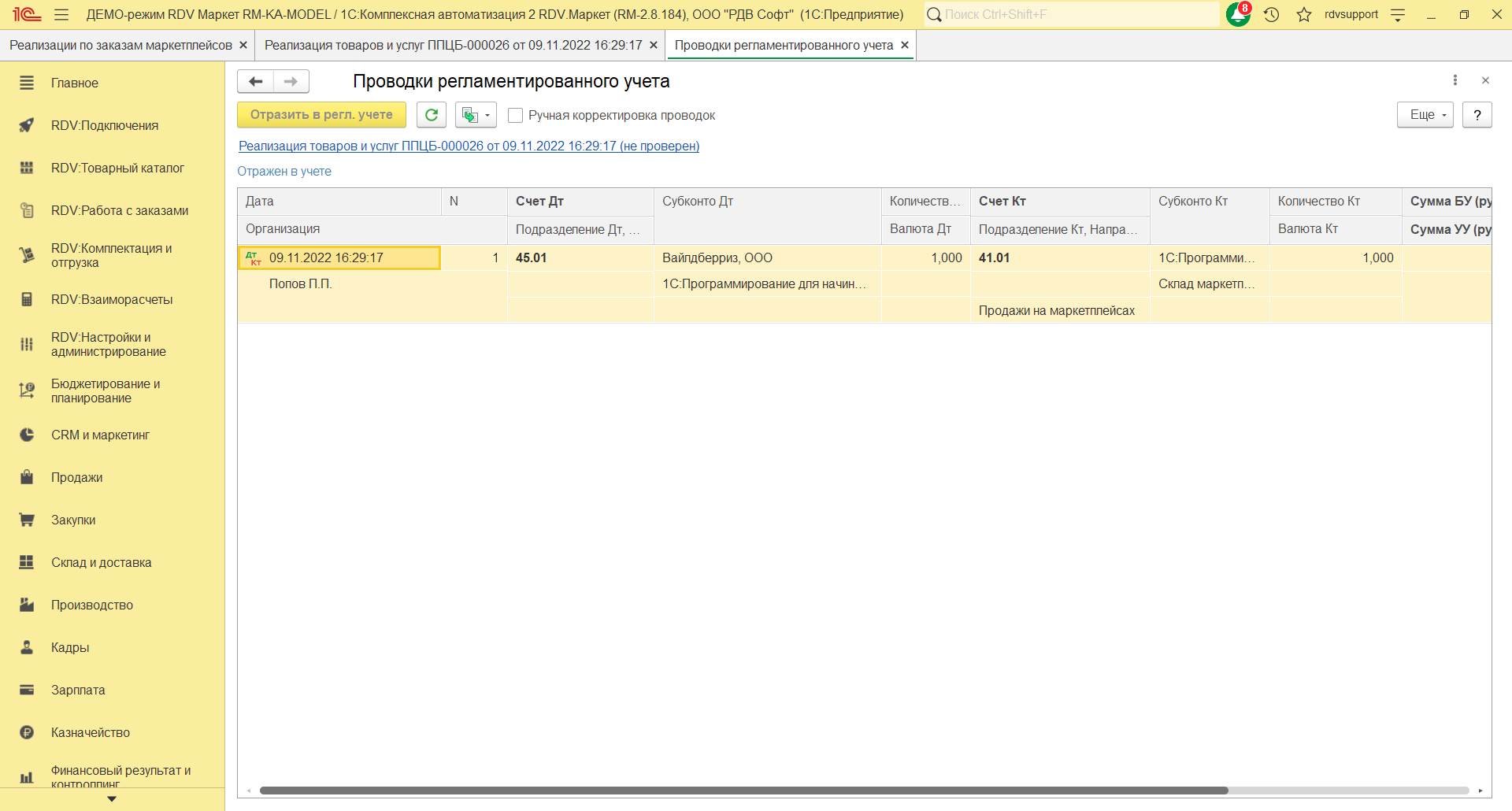 Перейдите в проводки регламентированного учета: