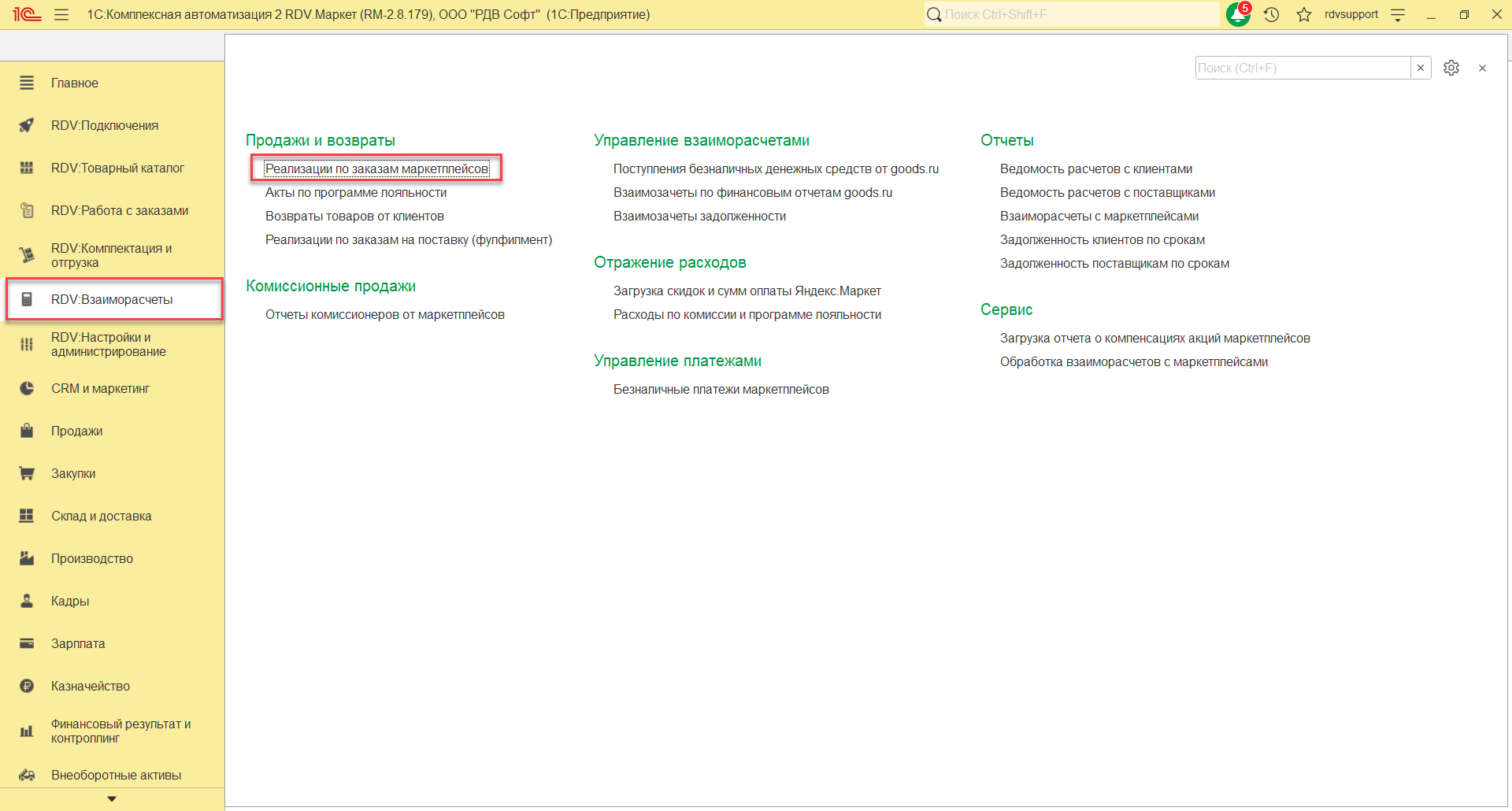 Выполнение операций в системе RDV Маркет: