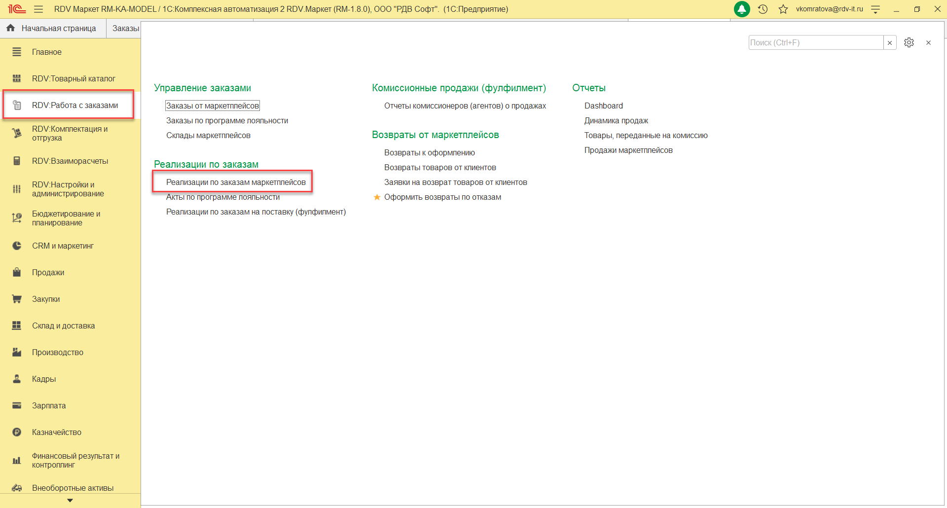 Выполнение операций в системе RDV Маркет: