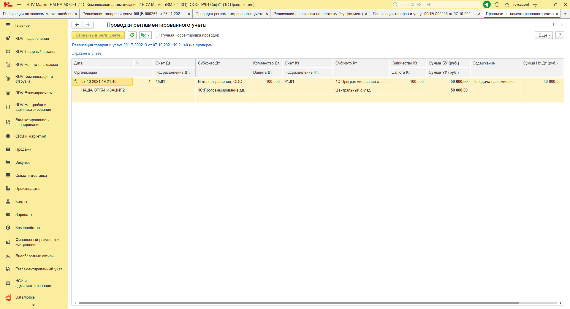 В системе RDV Маркет реализован автоматизированный процесс формирования реализаций, который не требует ручных операций и учитывает все методологические особенности в бухгалтерском и налоговом учете: