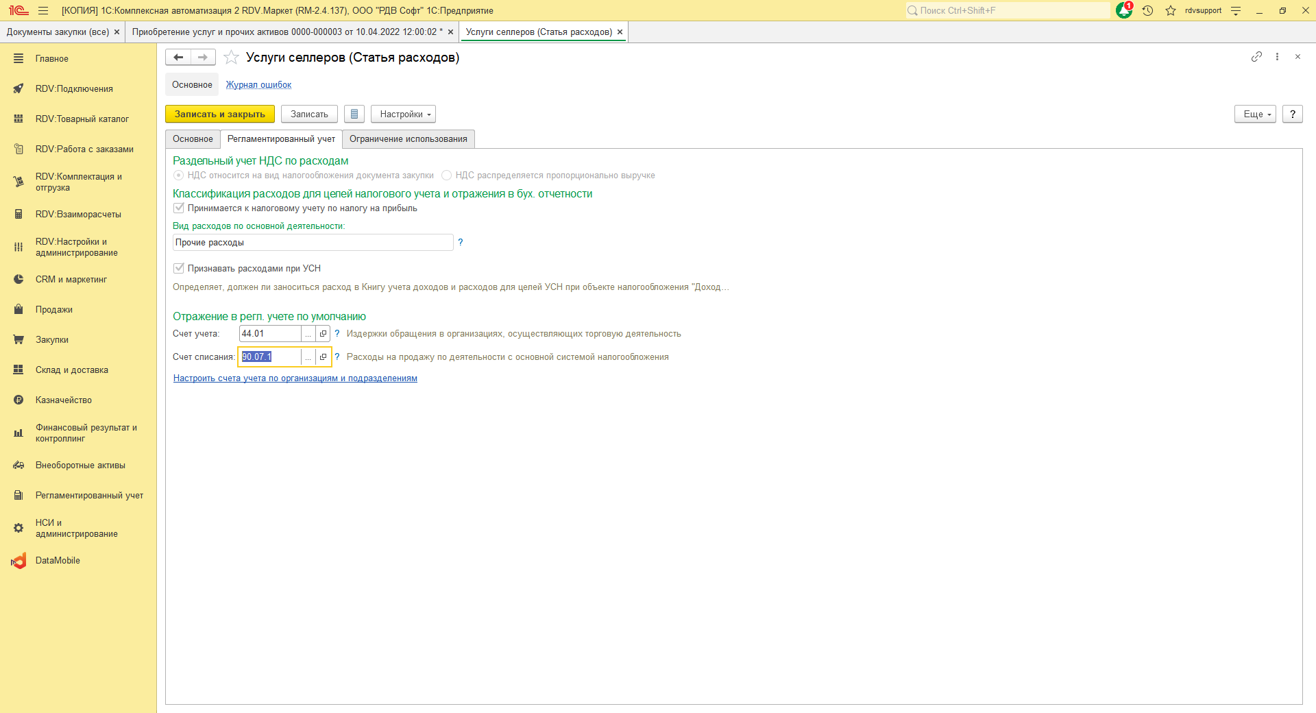 В статьях расходов необходимо настроить Тип расходов, Порядок распределения расходов, Тип аналитики расходов, порядок отражения в регламентированном учете, в том числе признание расходов и счета учета для отражения в регл. учете.
