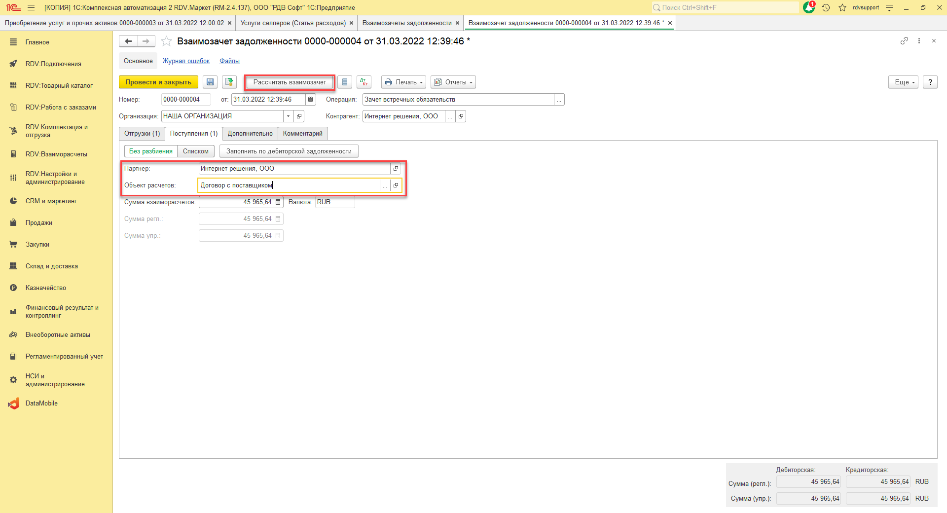 Документы Взаимозачет задолженности следует формировать и проводить регулярно (минимум один раз в месяц).