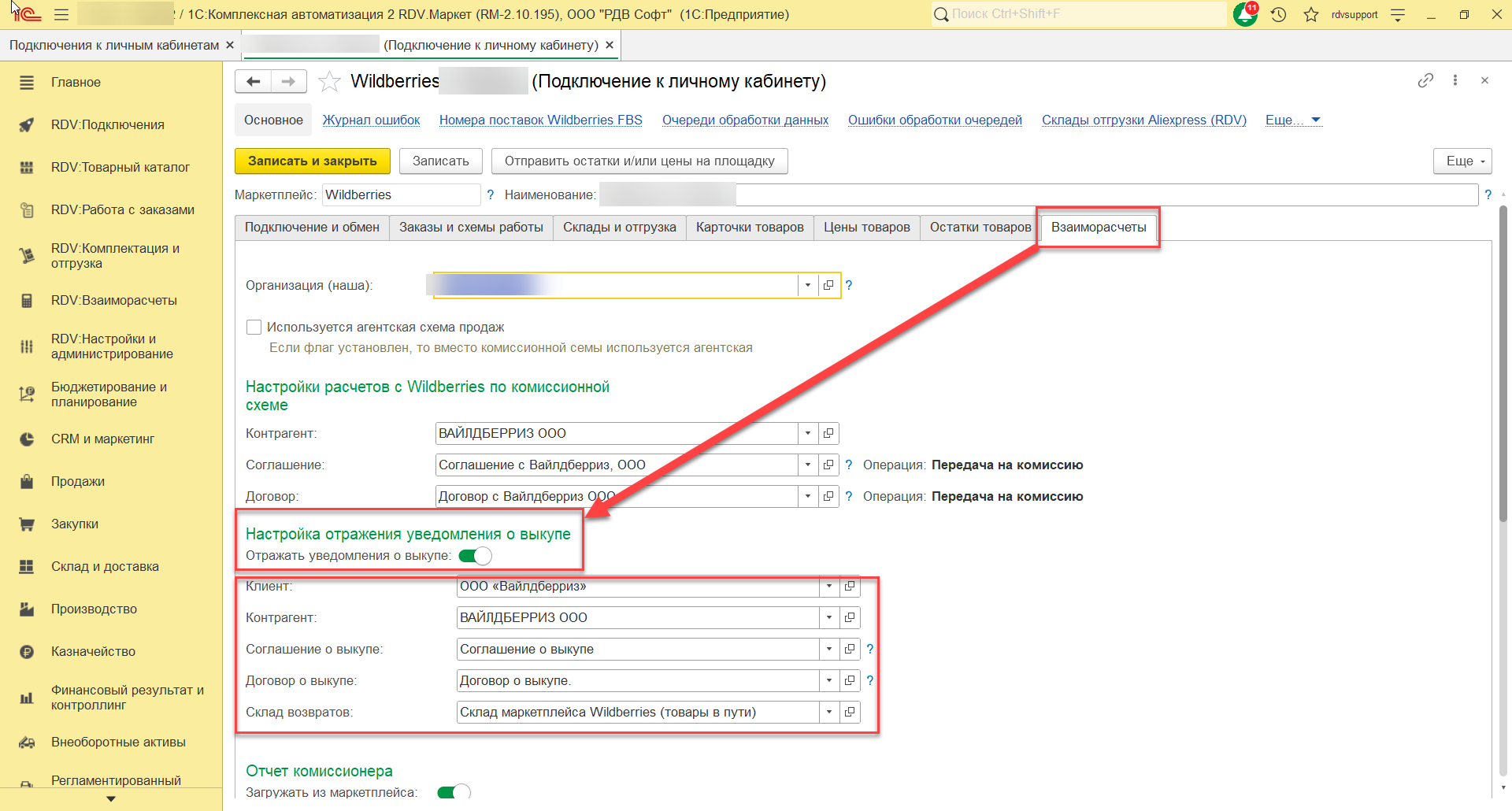Маркетплейс изменил юридическое лицо, как отразить это в 1С (RDV Маркет 2.0)