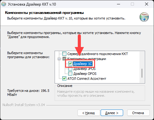 При установке обязательно нужно поставить флаг "Драйвер 1С".