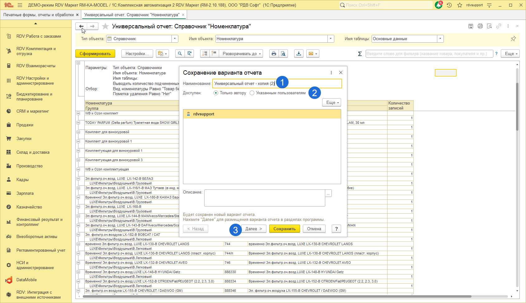 3. По кнопке Далее можно указать в каком разделе будет находится сохраненный вариант отчета
