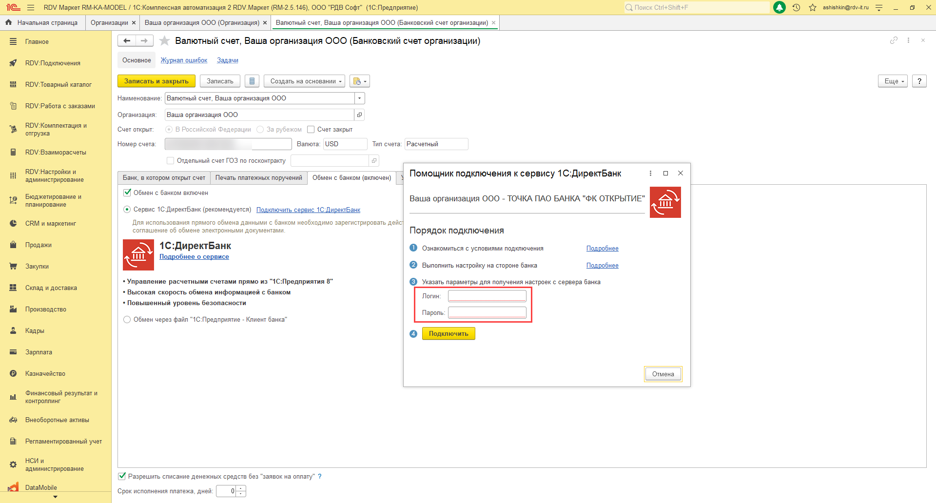 Сервис: 1С: ДиректБанк позволяет обмениваться платежными поручениями и выписками напрямую с банком.