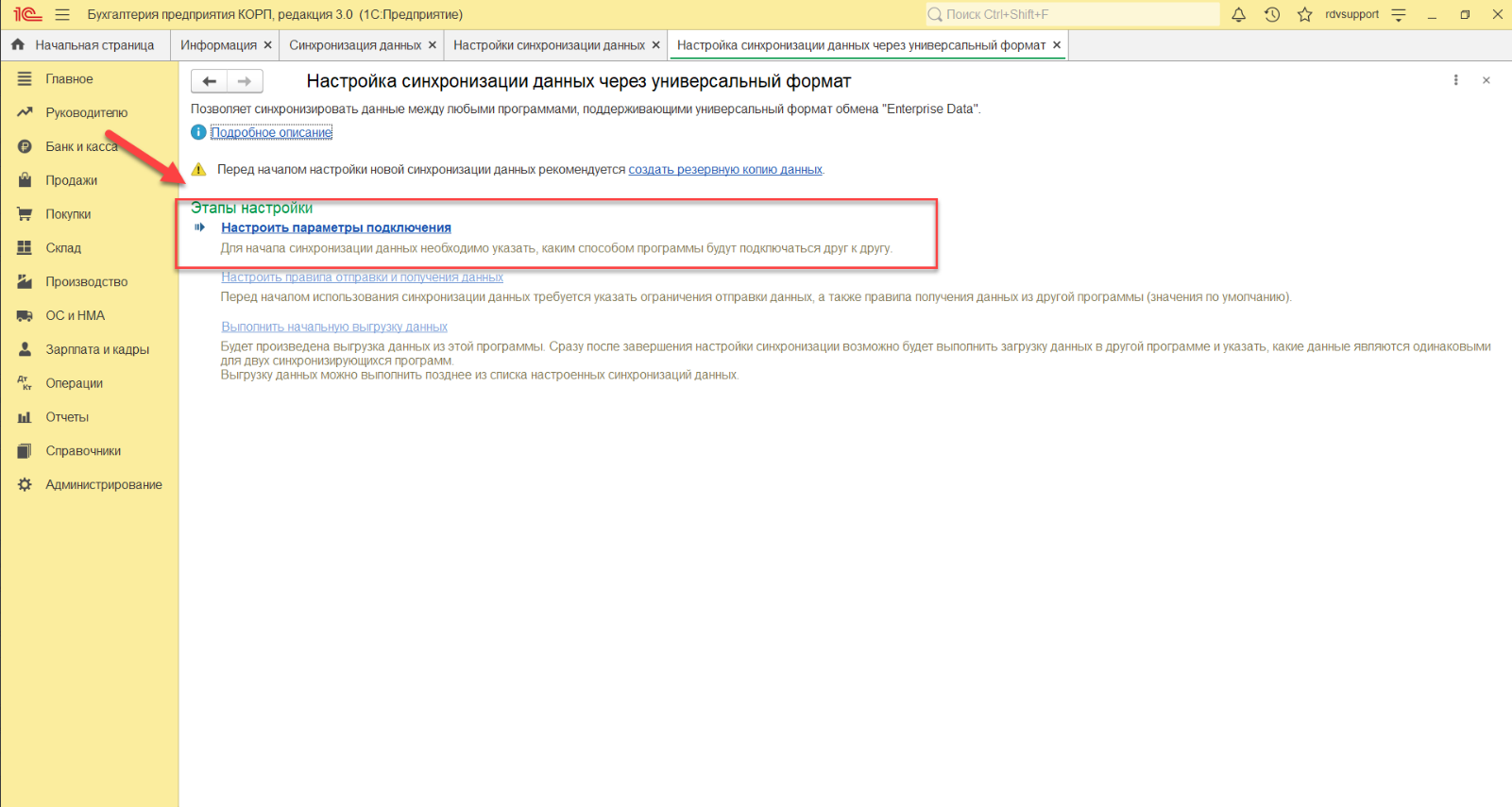 - Перейти по ссылке "Настройки синхронизации данных":