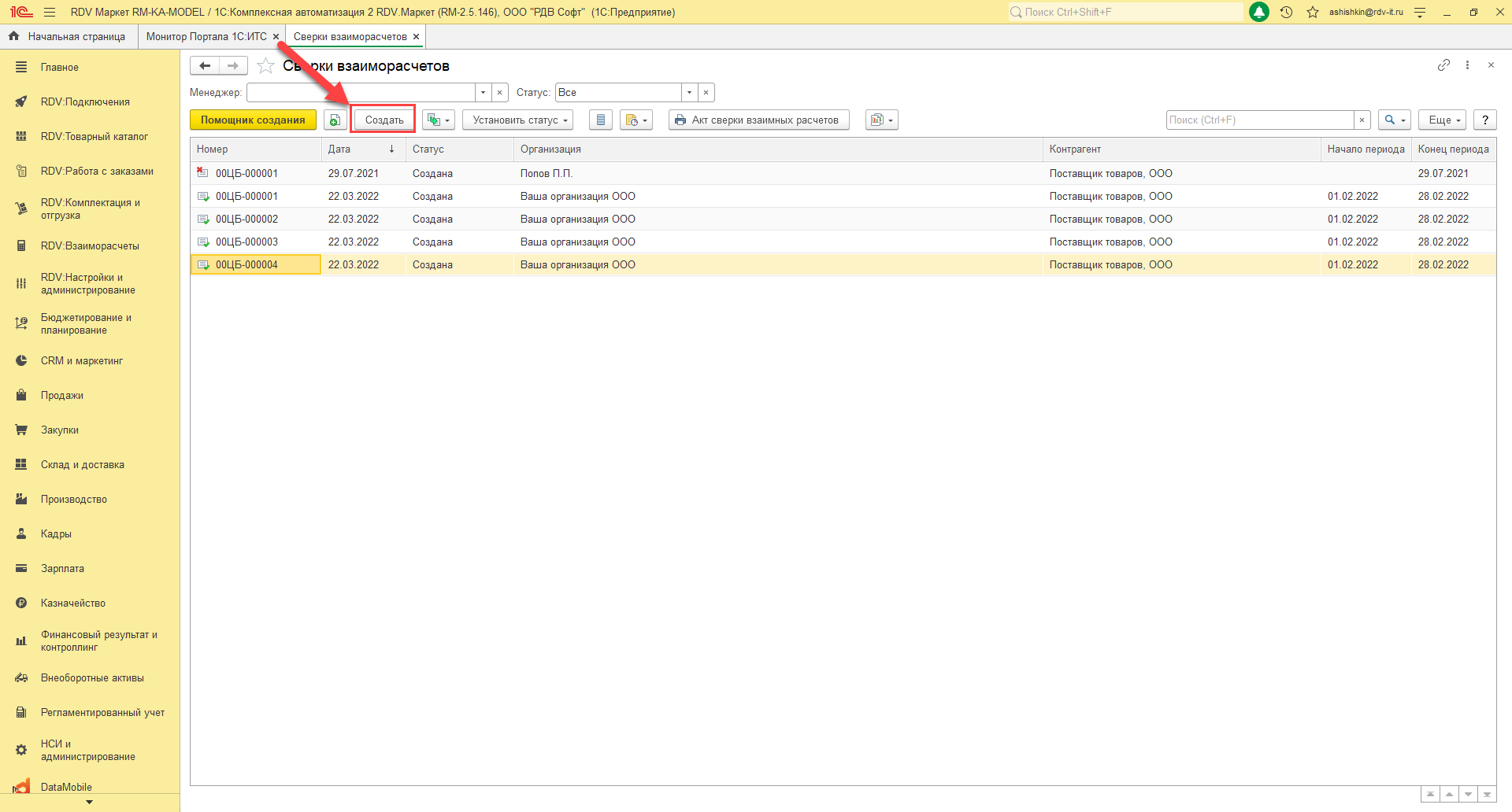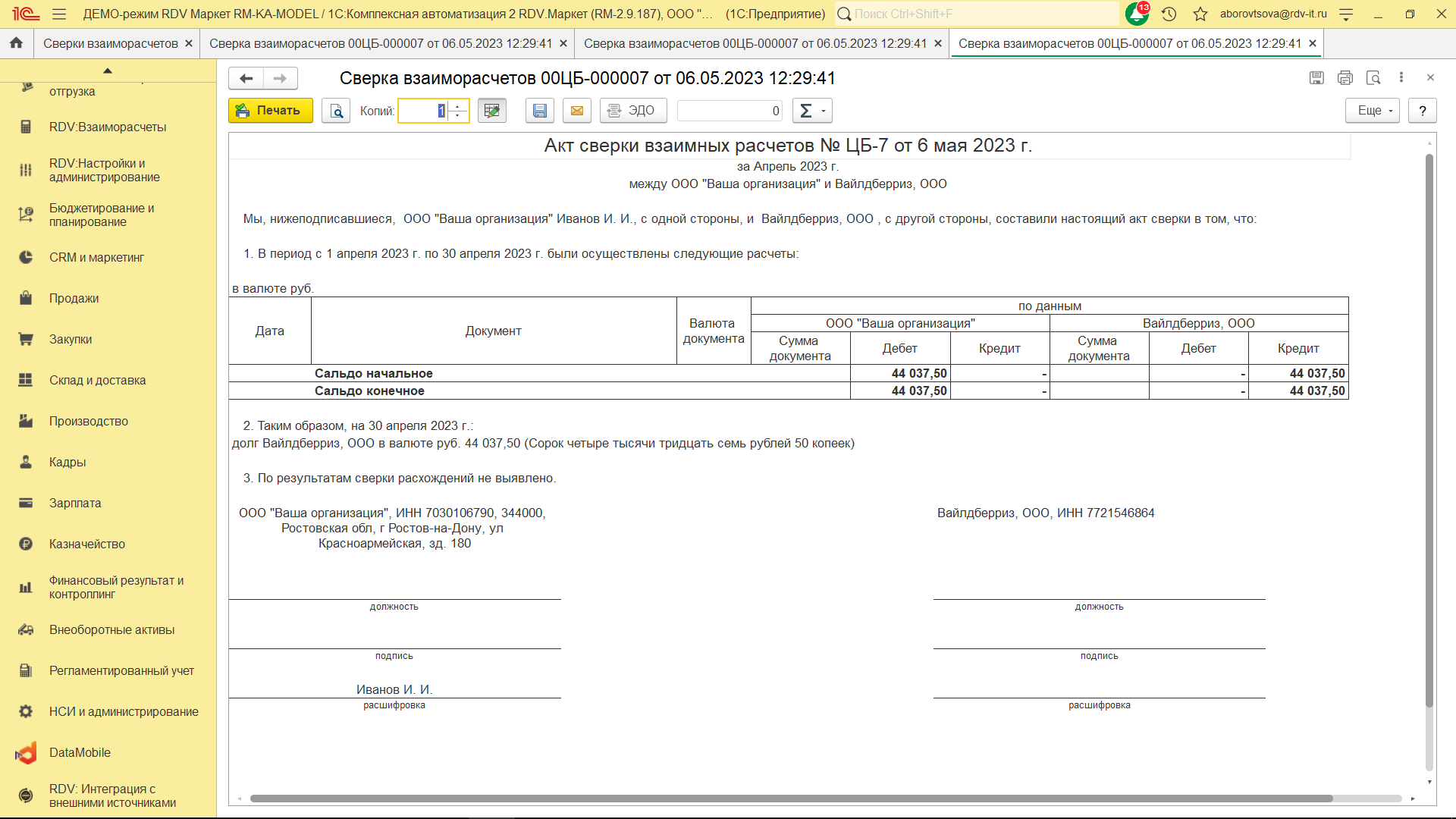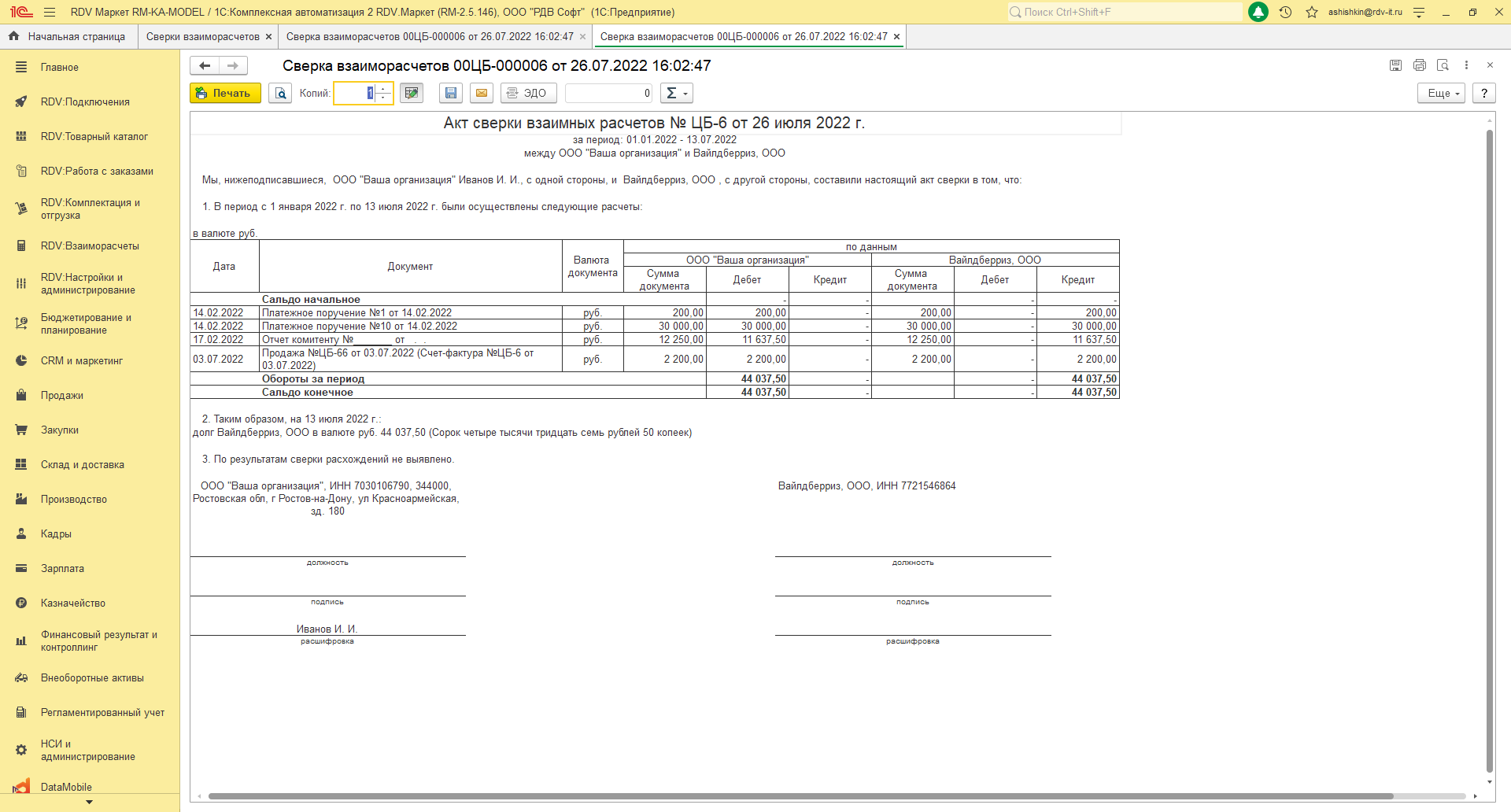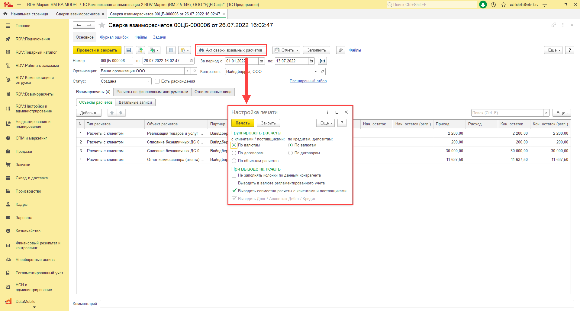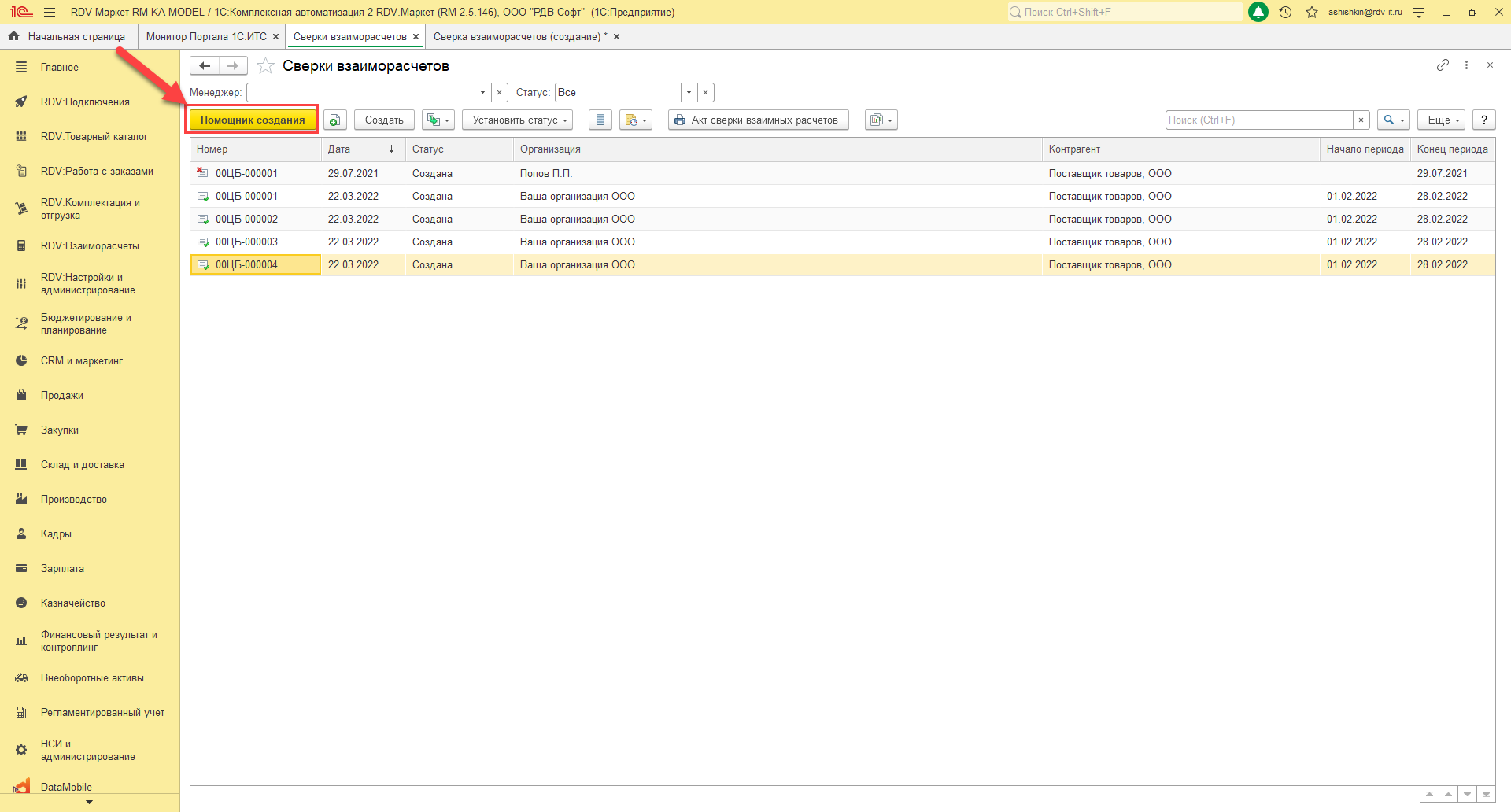 Создать акт сверки взаиморасчётов с помощью помощника