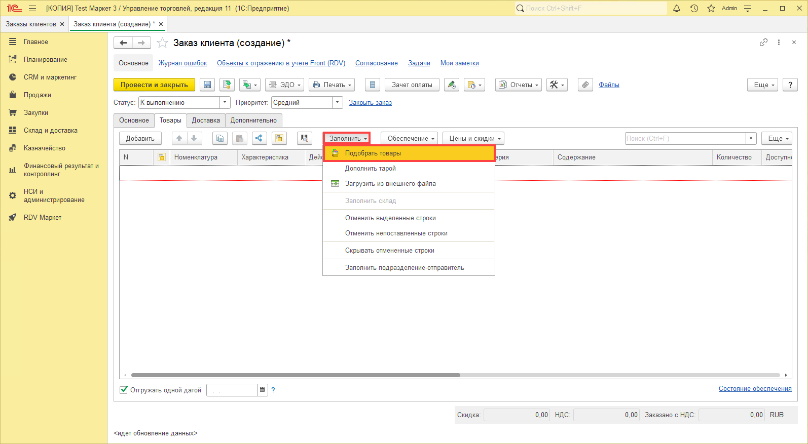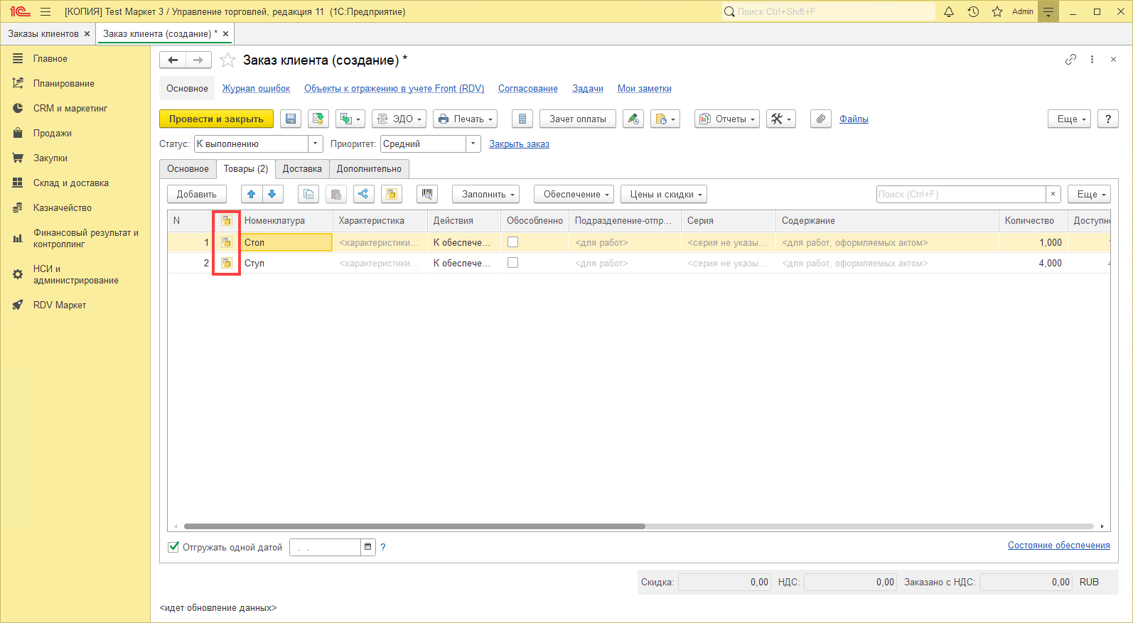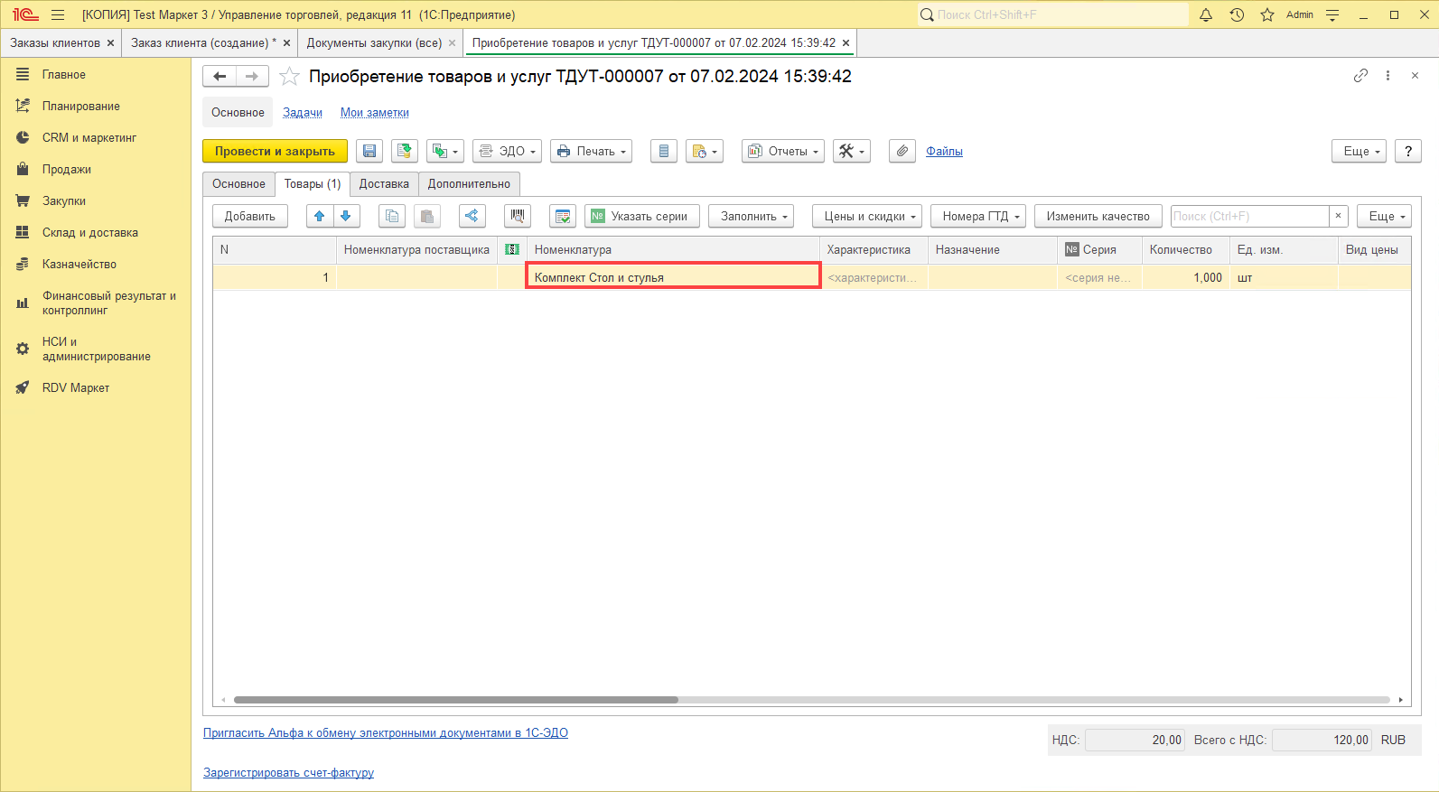 RDV Маркет 3 на текущий момент поддерживает работу только с упаковками. По комплектам передаются остатки только самого комплекта, без учета комплектующих, документы сборки не создаются. Не поддерживается работа с наборами. Поддержка работы с комплектами и наборами находится в разработке.