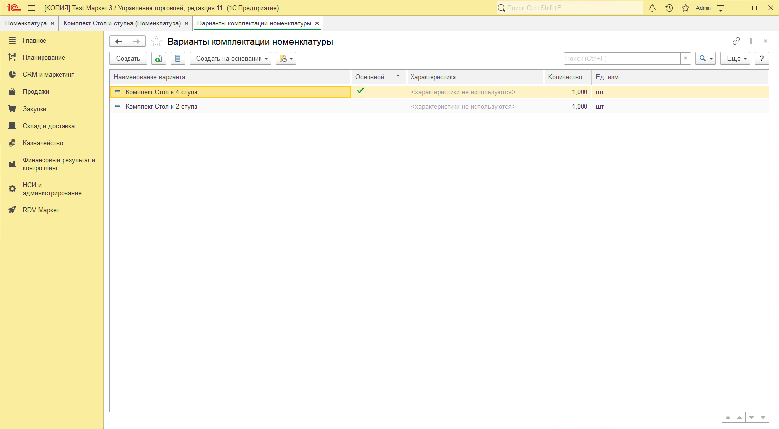 - Выбрать основной вариант комплектации или нет (Модуль RDV Маркет 2 работает с основными вариантами комплектации если вариантов несколько)