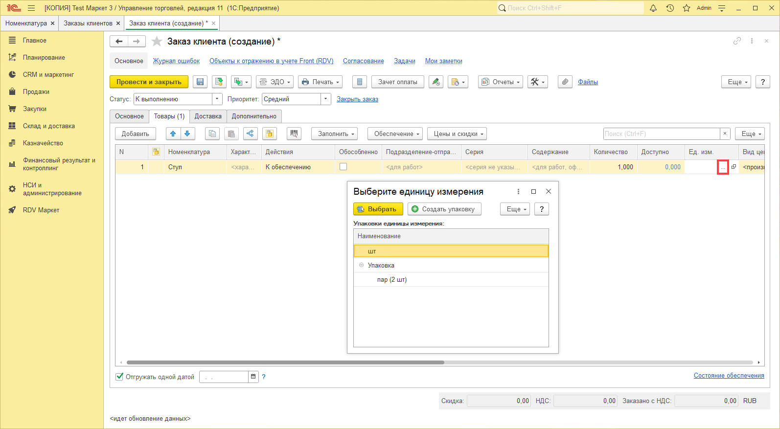 RDV Маркет 2 поддерживает работу с упаковками и комплектами. Для комплектов на маркетплейсы передаются остатки с учетом комплектующих и создаются документы Заказ на сборку и Сборка товаров. Не поддерживается работа с наборами.