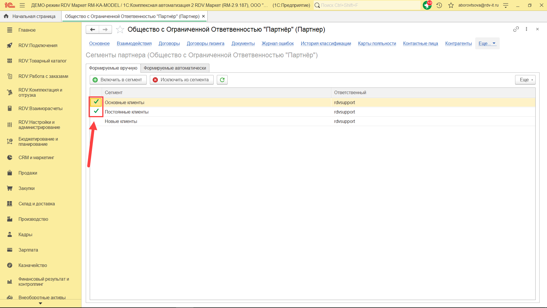 Таким образом, с помощью сегментации партнеров можно не создавать индивидуальные соглашения для каждого партнера. Достаточно разделить партнеров по сегментам и создать типовые соглашения для каждого сегмента.