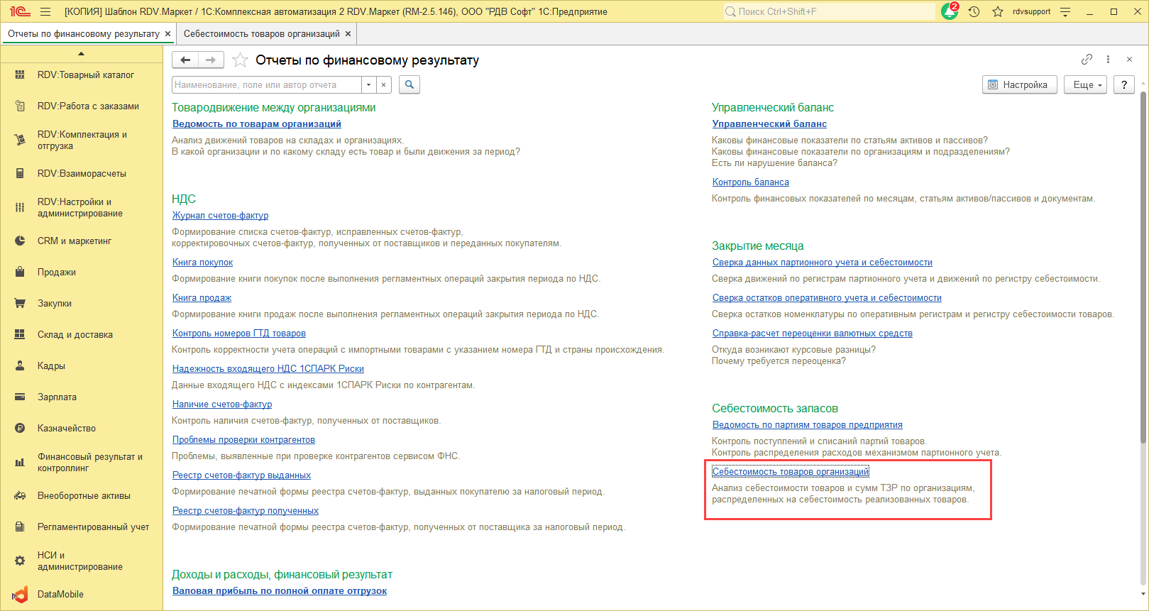 1.Отчет "Себестоимость товаров организаций"