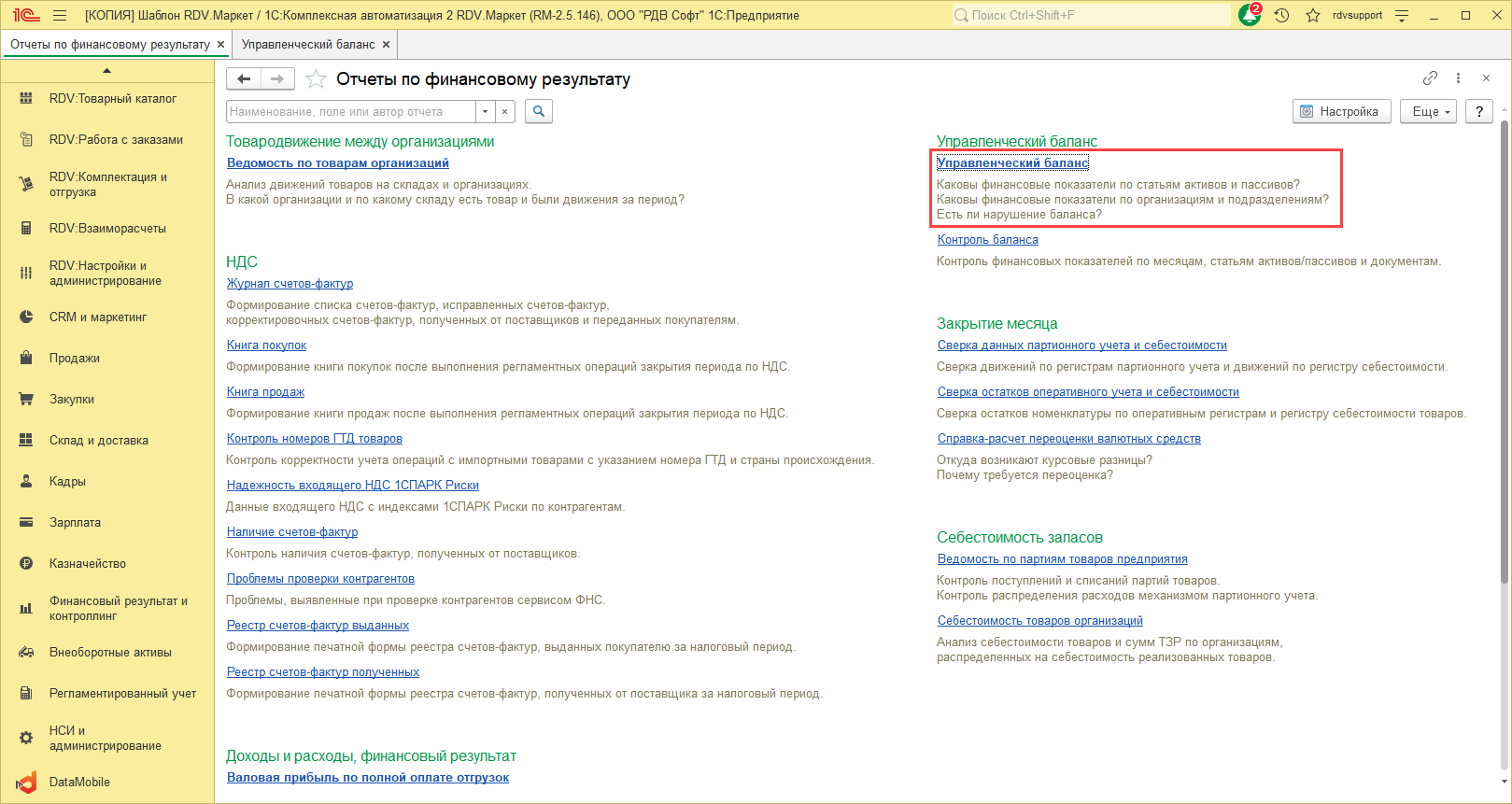 7.Отчет "Управленческий баланс"