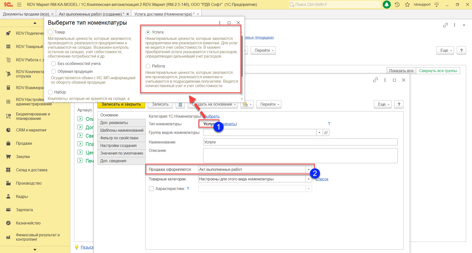 В документ "Акт выполненных работ" может быть добавлена только номенклатура:
