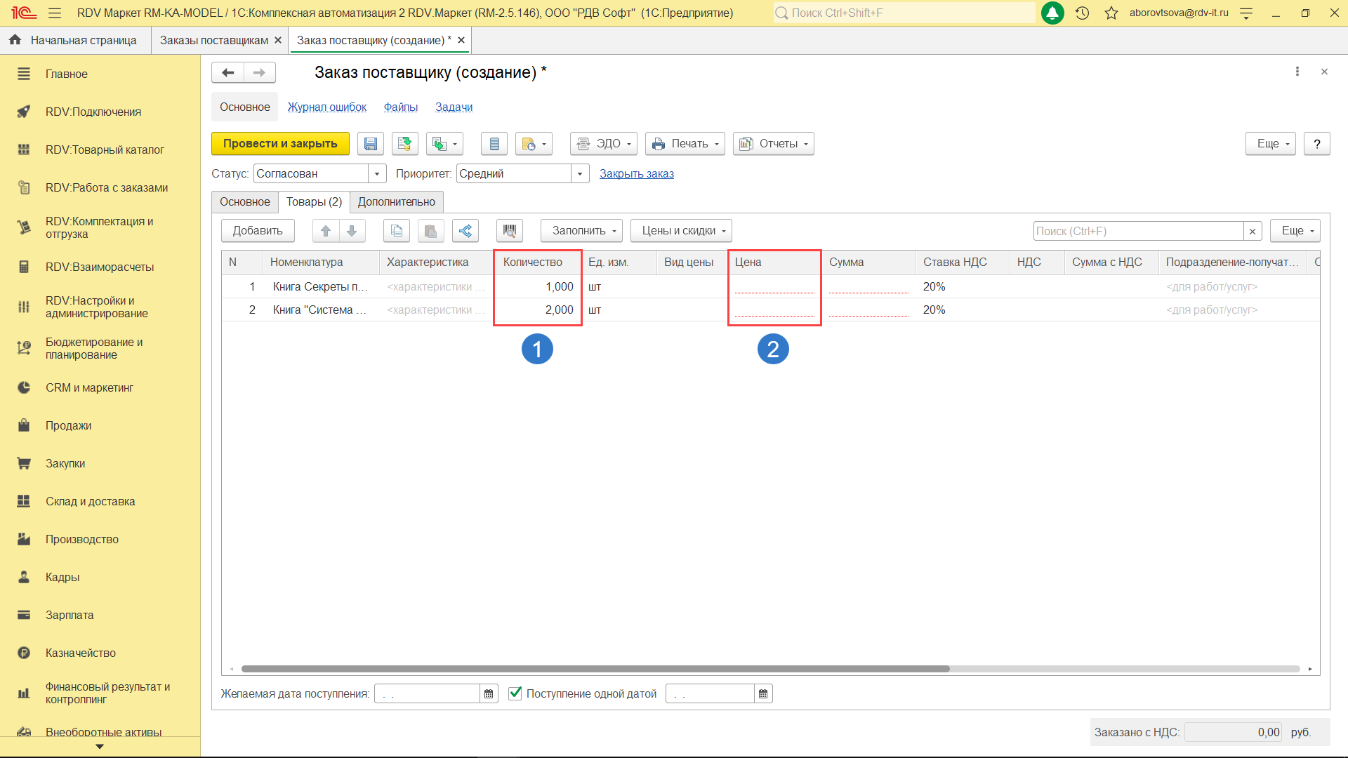 ) можно создать документ "Приобретение товаров и услуг" (как отразить закупку в 1С).