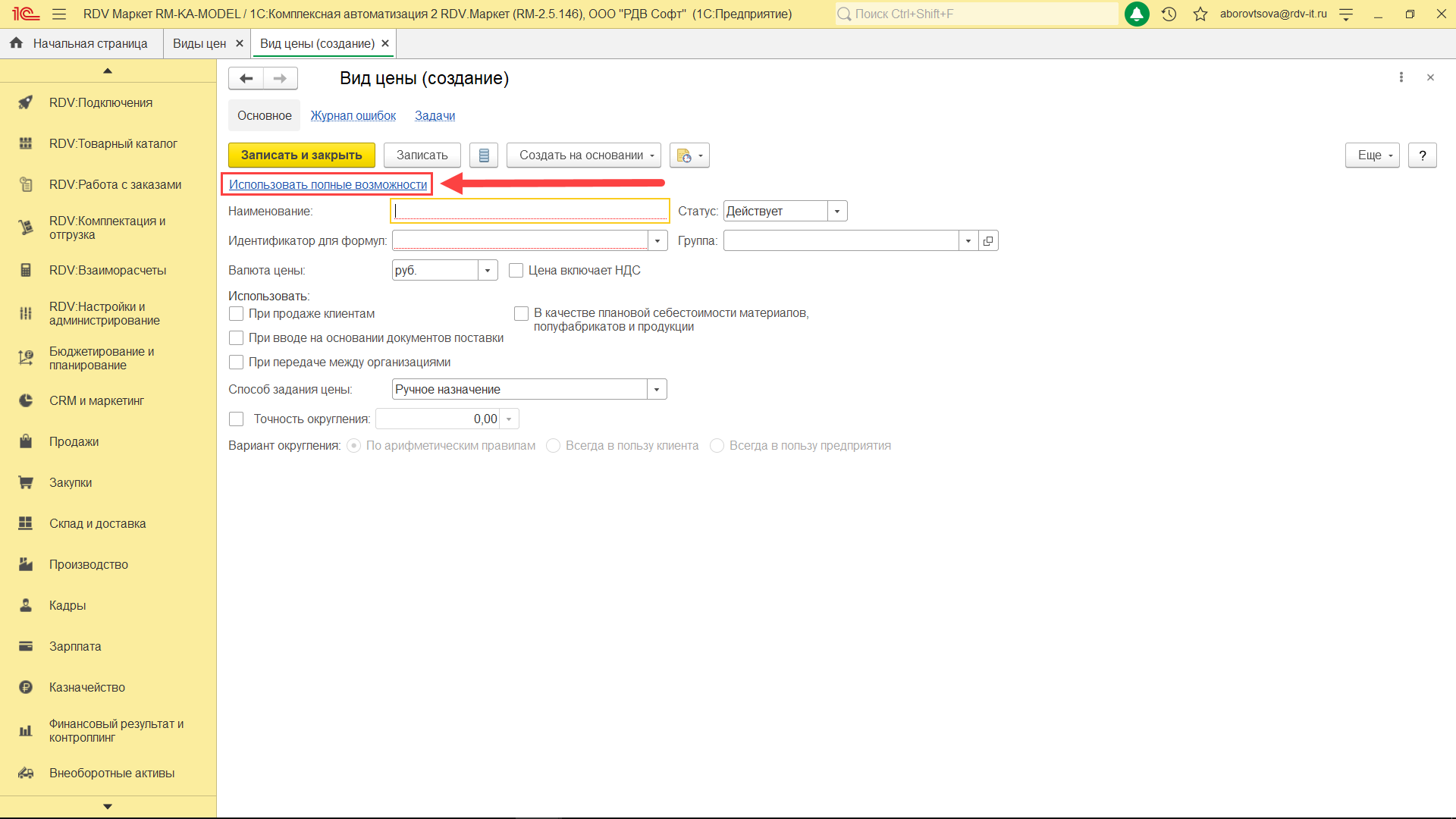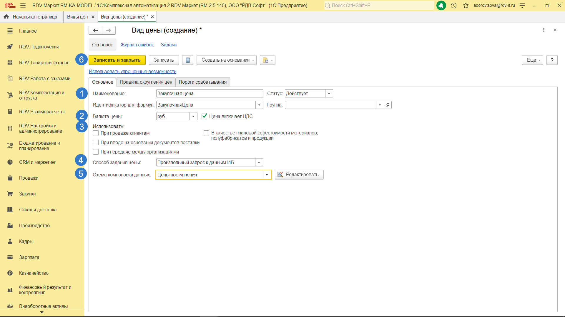 - Валюта цены. Установить флаг "Цена включает НДС".