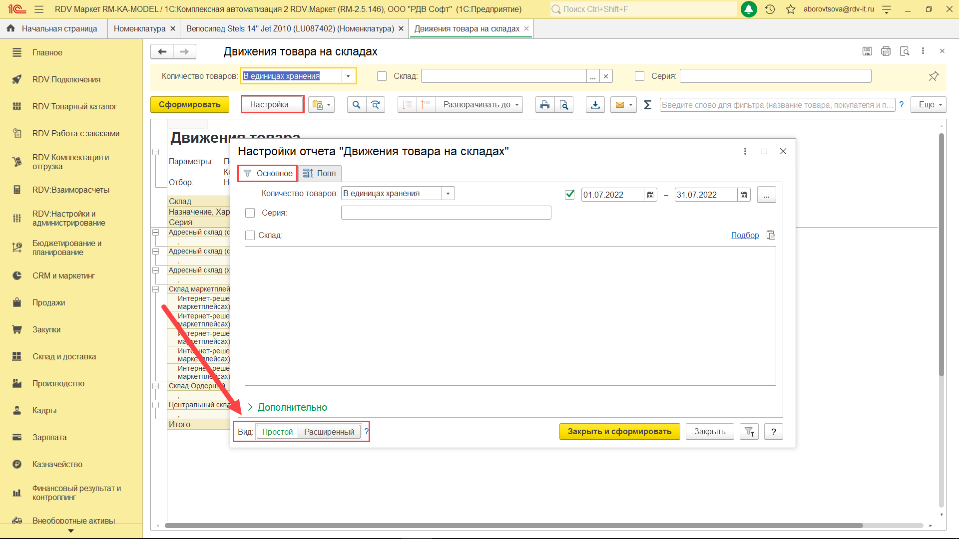 Рекомендуем включить вид "Расширенный", т.к. он даётся больше возможностей для настройки отчёта.