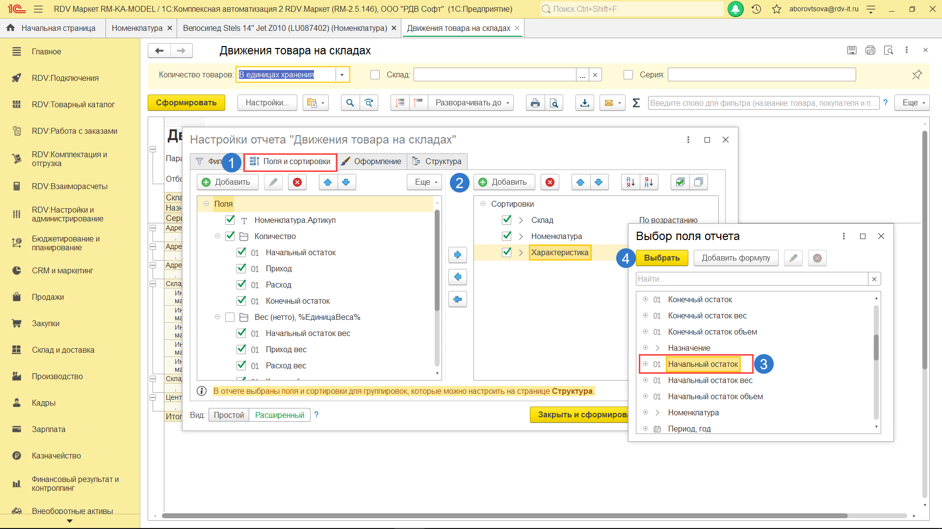 На вкладке "Поля и сортировки" можно добавить поля с новыми показателями или/и отсортировать отчёт по выбранным данным.
