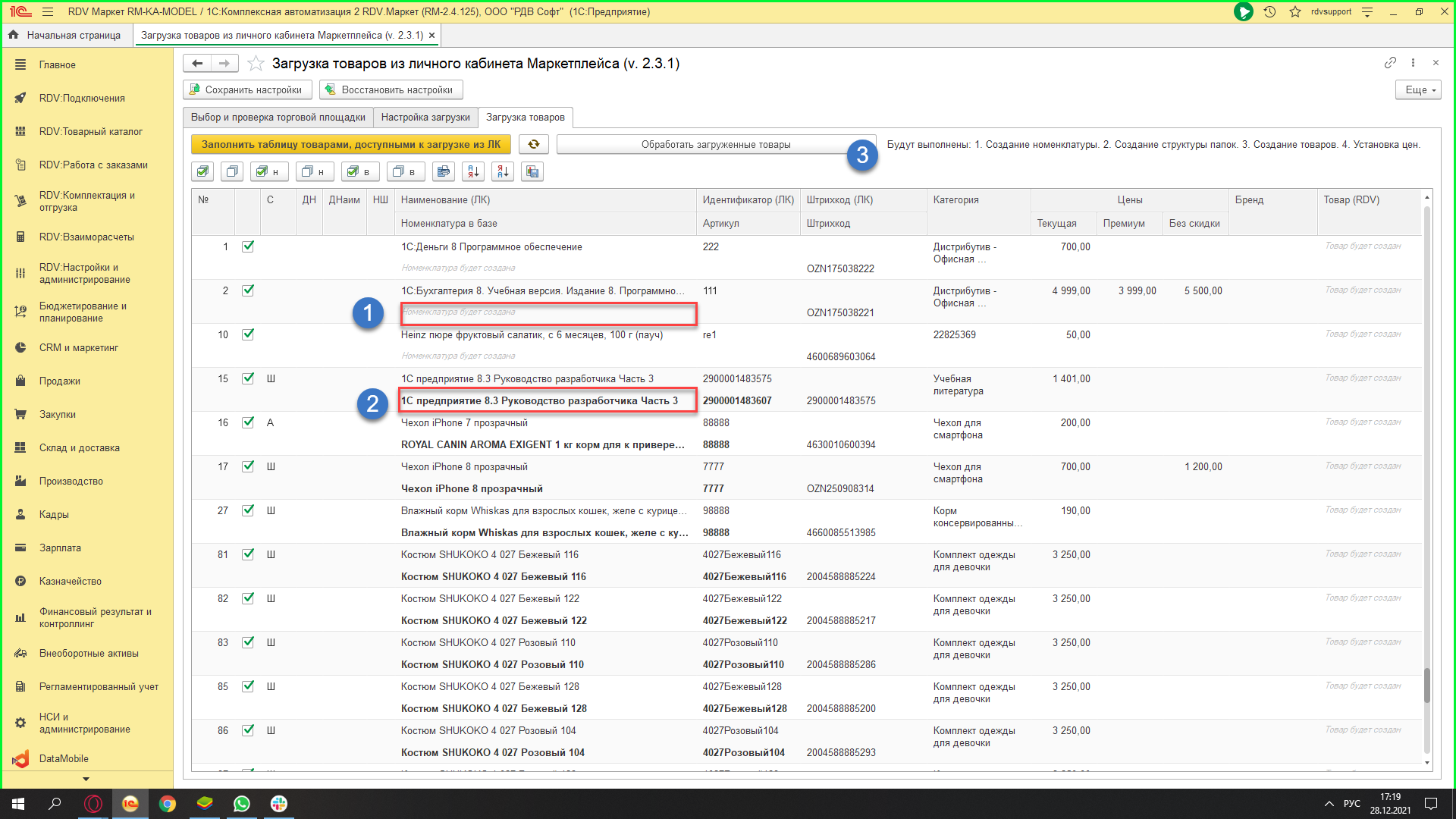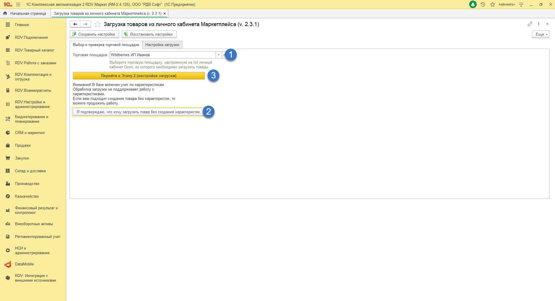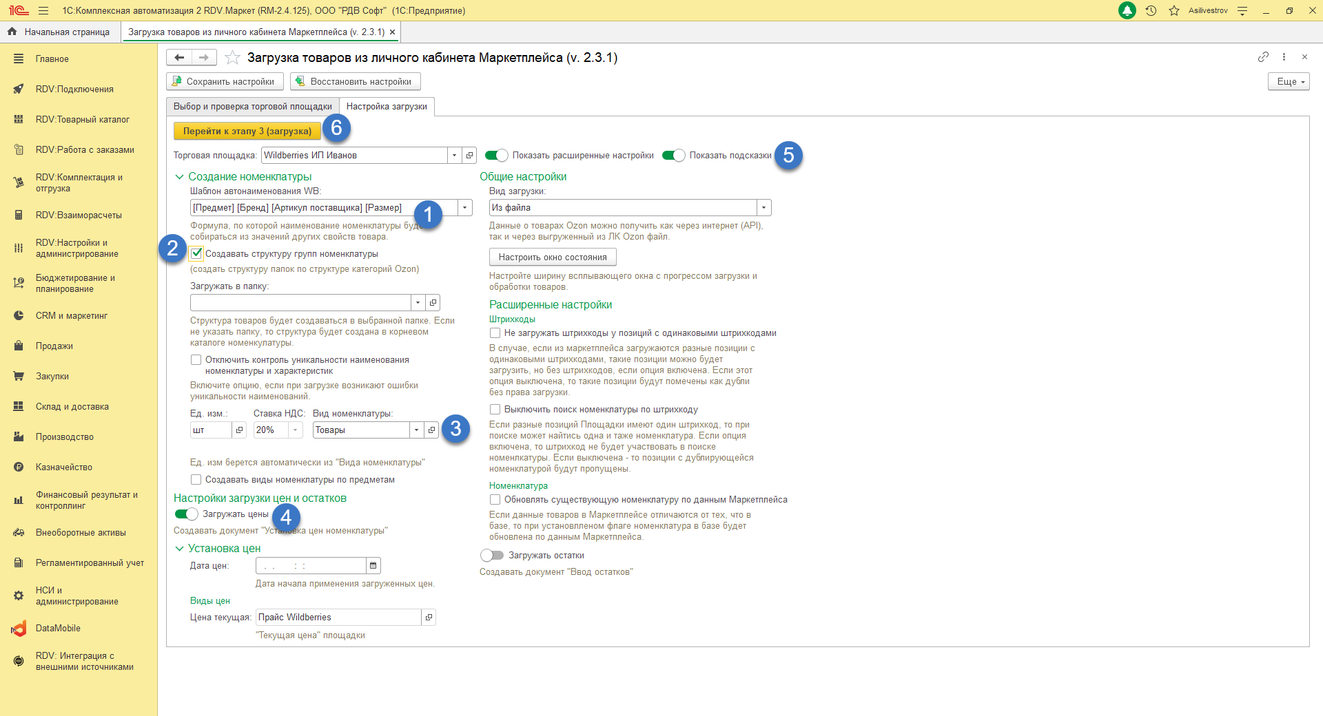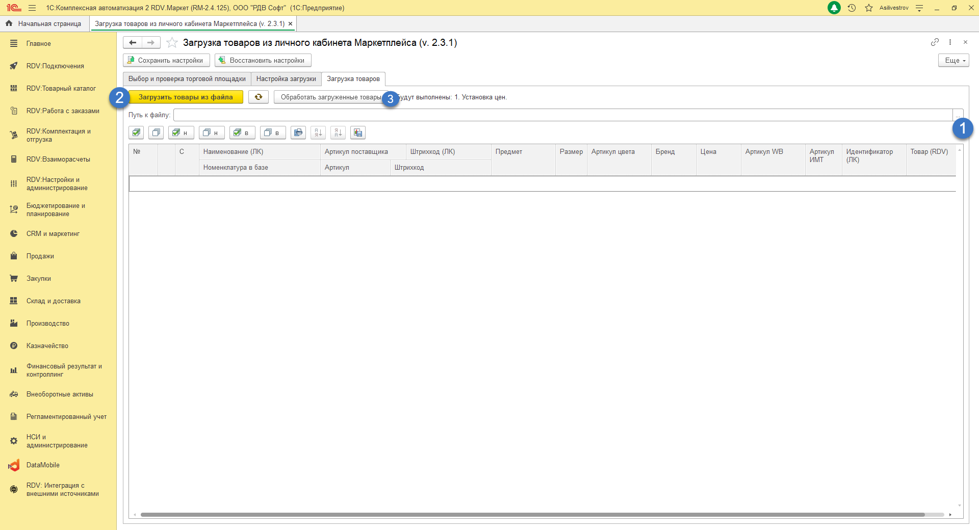 2.1 Загрузка перечня товаров из личного кабинета Wildberries в 1С