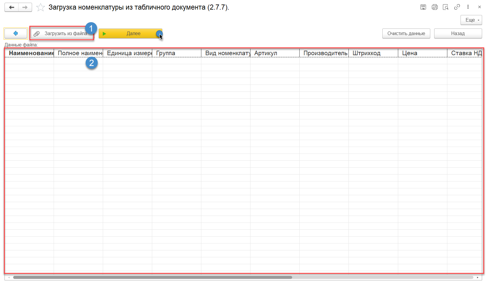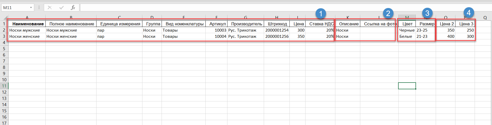 Либо с помощью любого Excel файла, но для корректной и полной загрузки сведений по номенклатуре он должен содержать следующие обязательные данные (1):