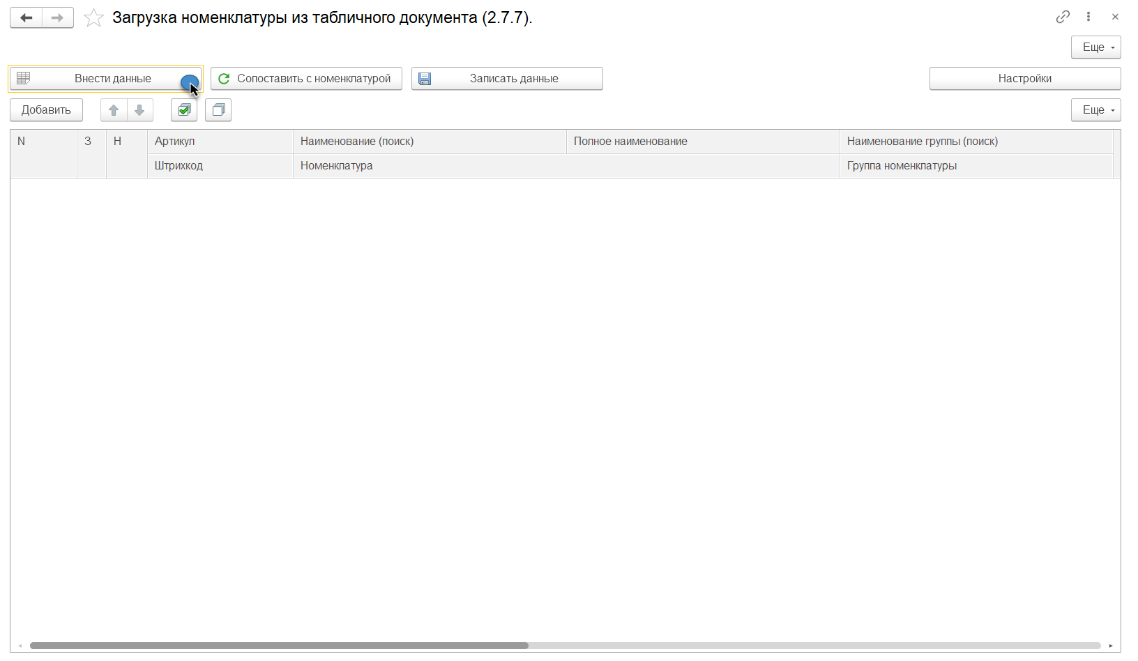 В открывшейся форме введите данные для загрузки, нажав на кнопку "Ввести данные":