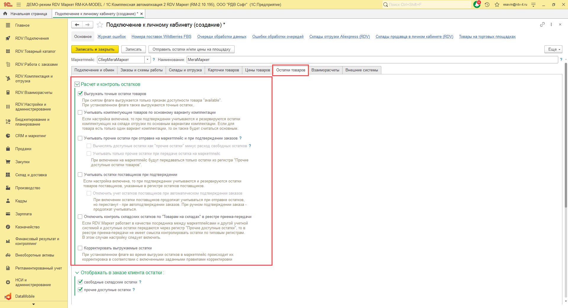 Если вам необходимо включить обмен остатками по API, пожалуйста, напишите нам на support@rdv-it.ru