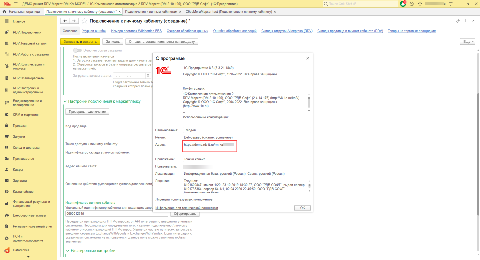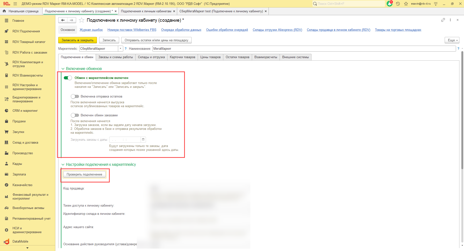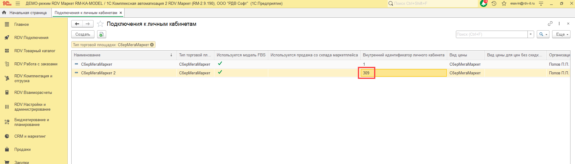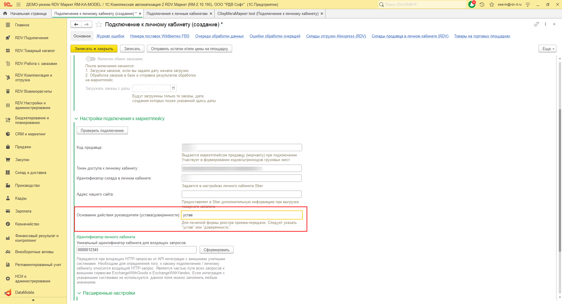 Настройка и подключение личных кабинетов производится в разделе RDV:Подключения - Подключения к личным кабинетам