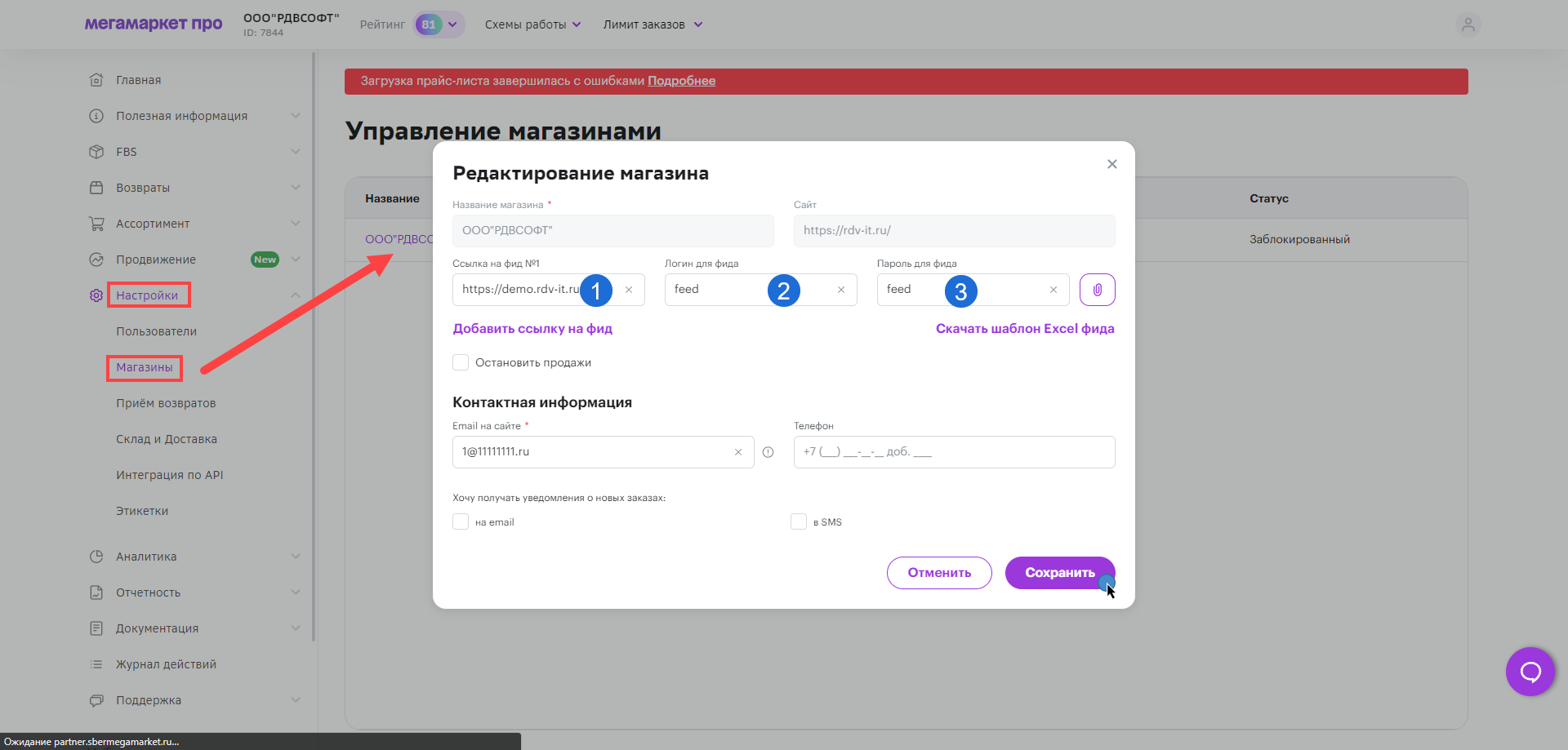 Обращаем ваше внимание, что в ЛК МегаМаркет должны быть созданы готовые связки