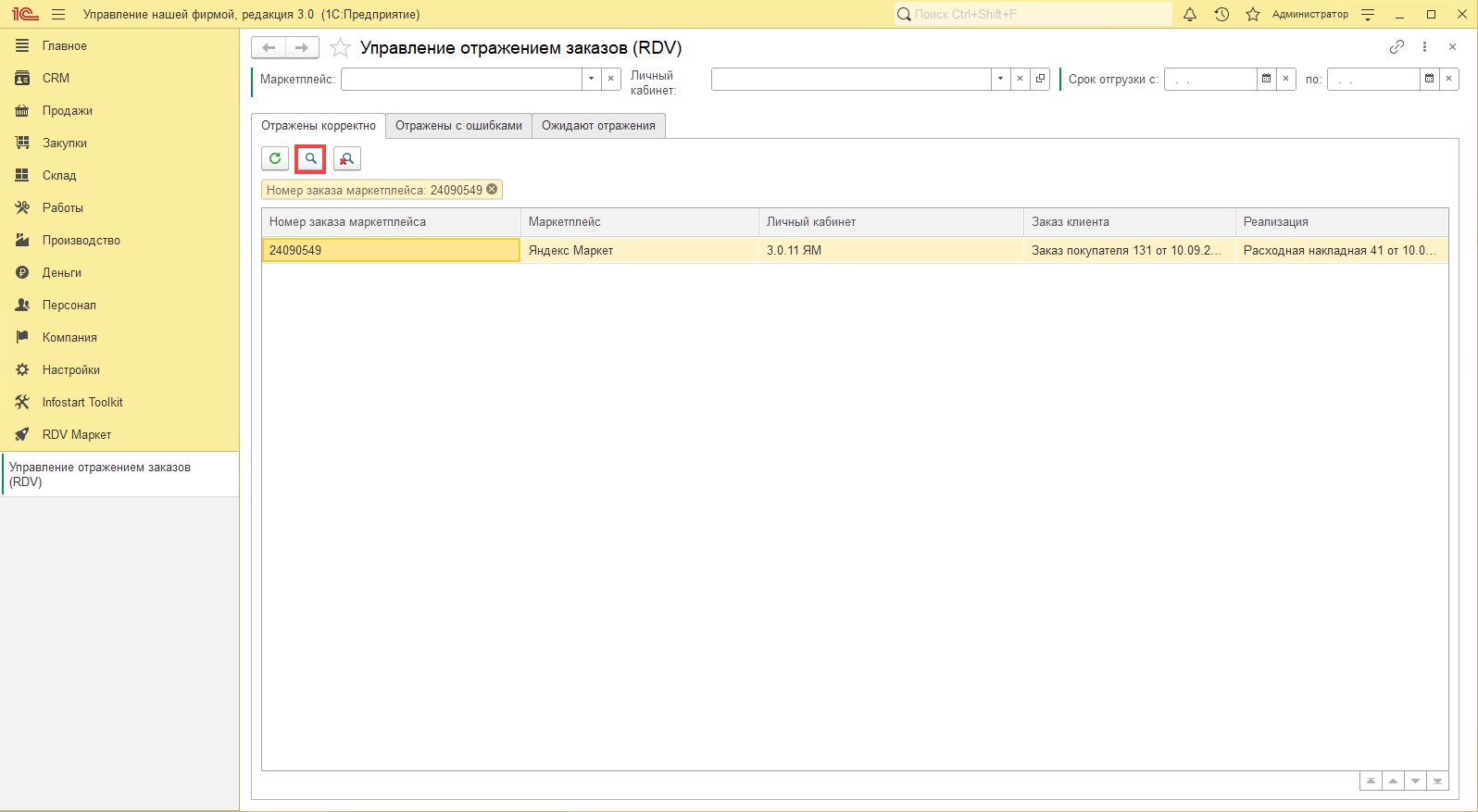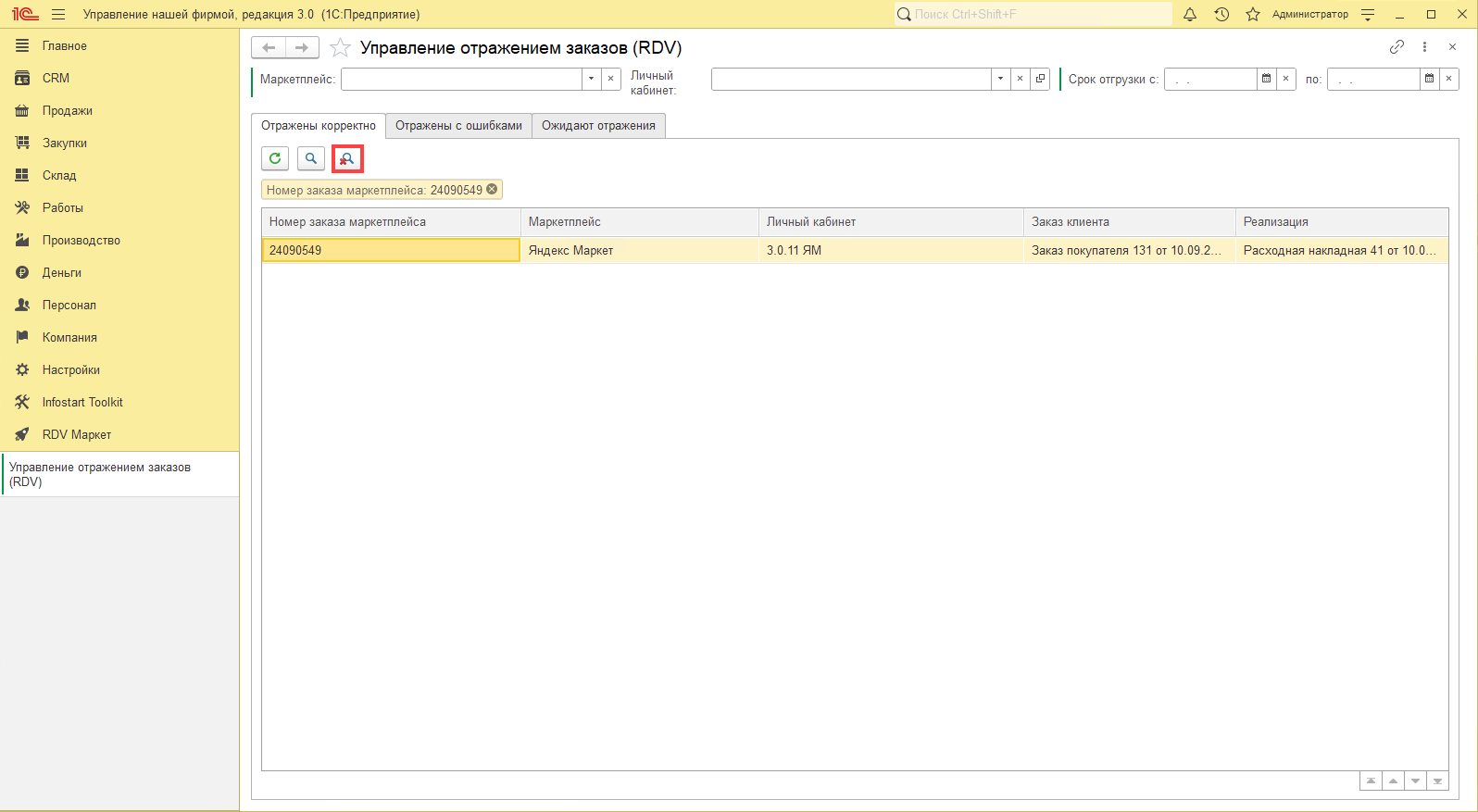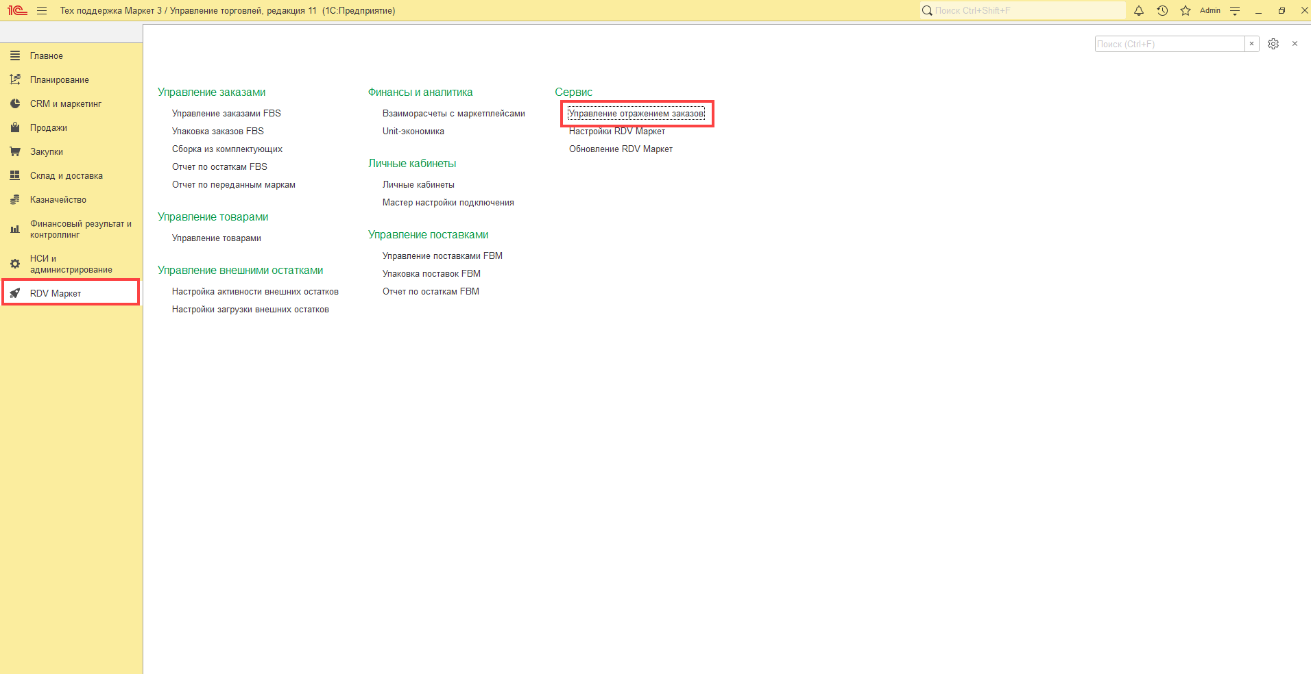 До релиза RDV Маркет 3.0.19 используется РМ "Управление отражением заказов".