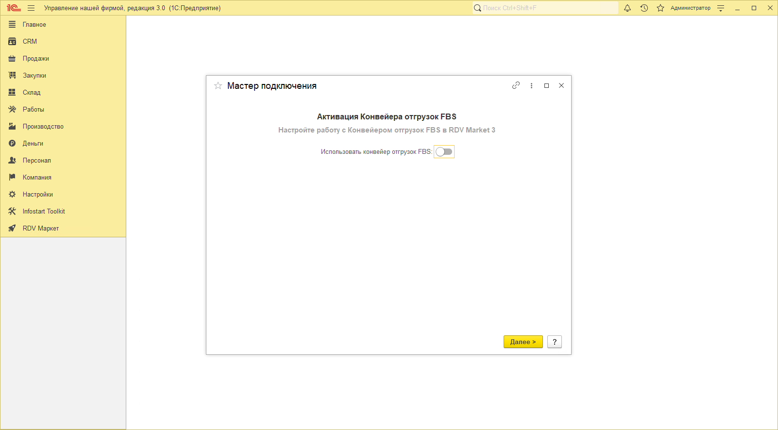 Активировать Конвейер FBS можно только через менеджера.
