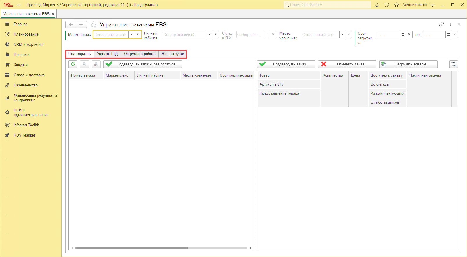 Работа с заказами FBS