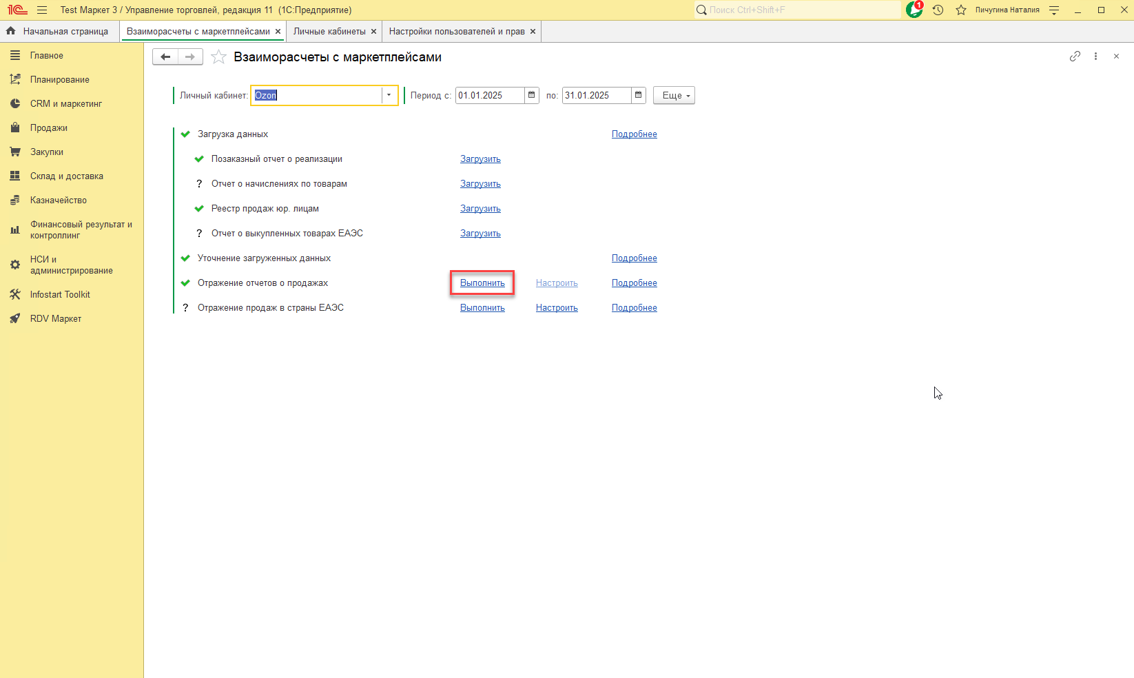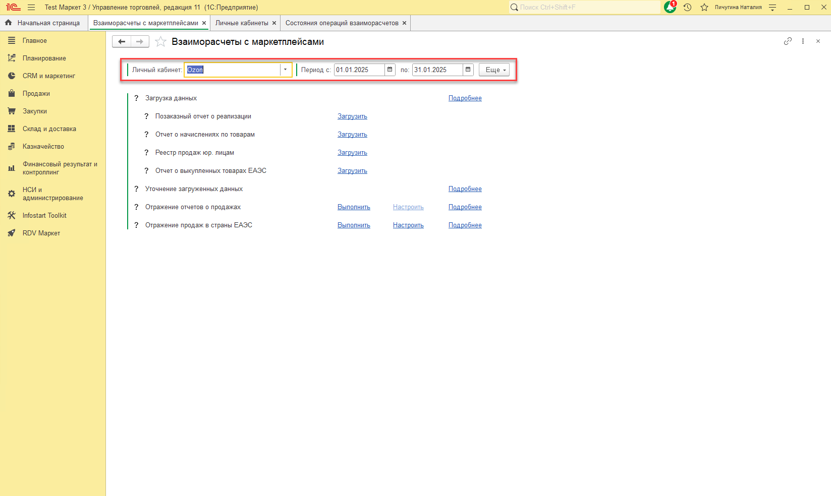 - Необходимо зайти в рабочее место "Взаиморасчеты с маркетплейсами".