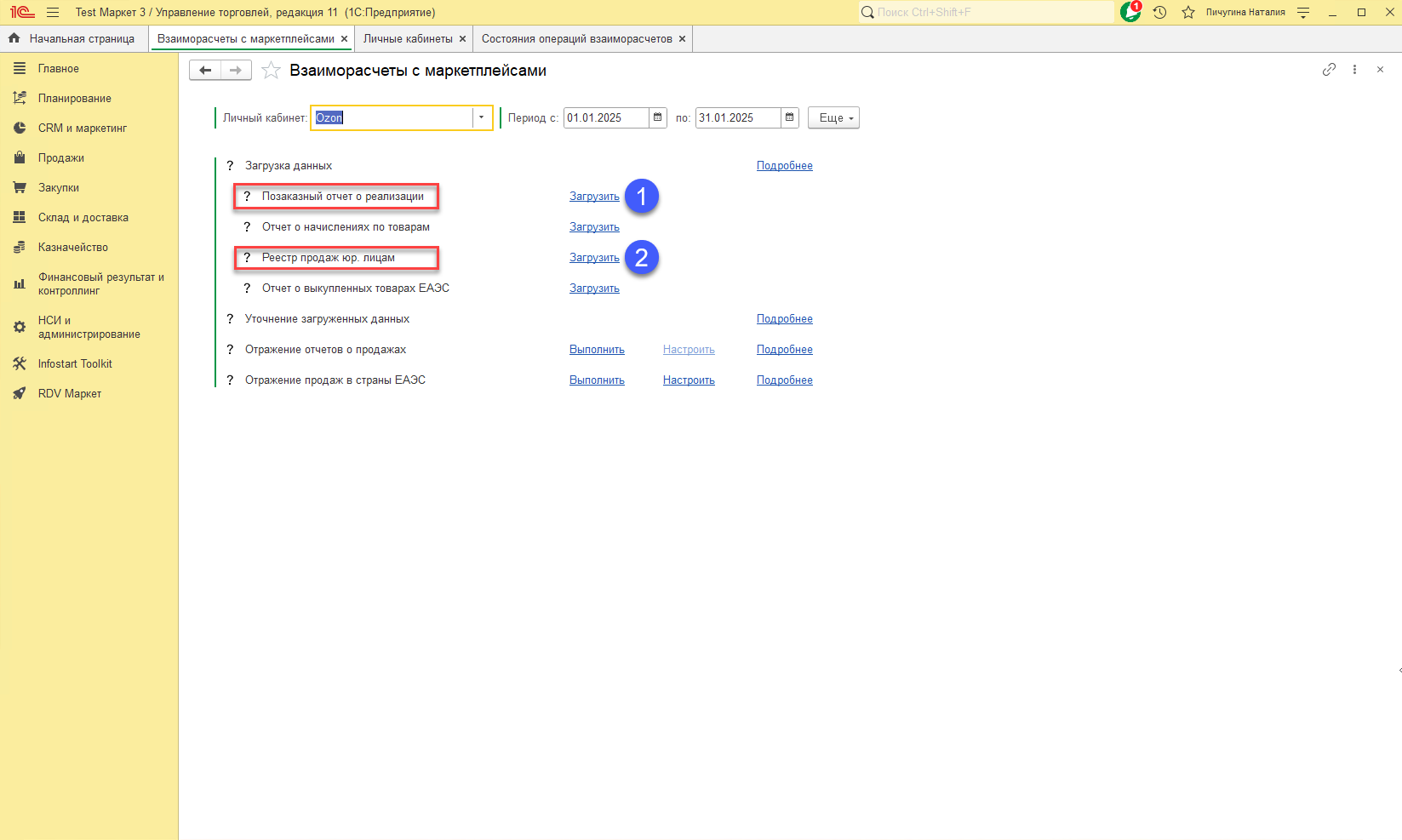 Настройки RDV Маркет и загрузка "Реестра продаж юр. лицам"