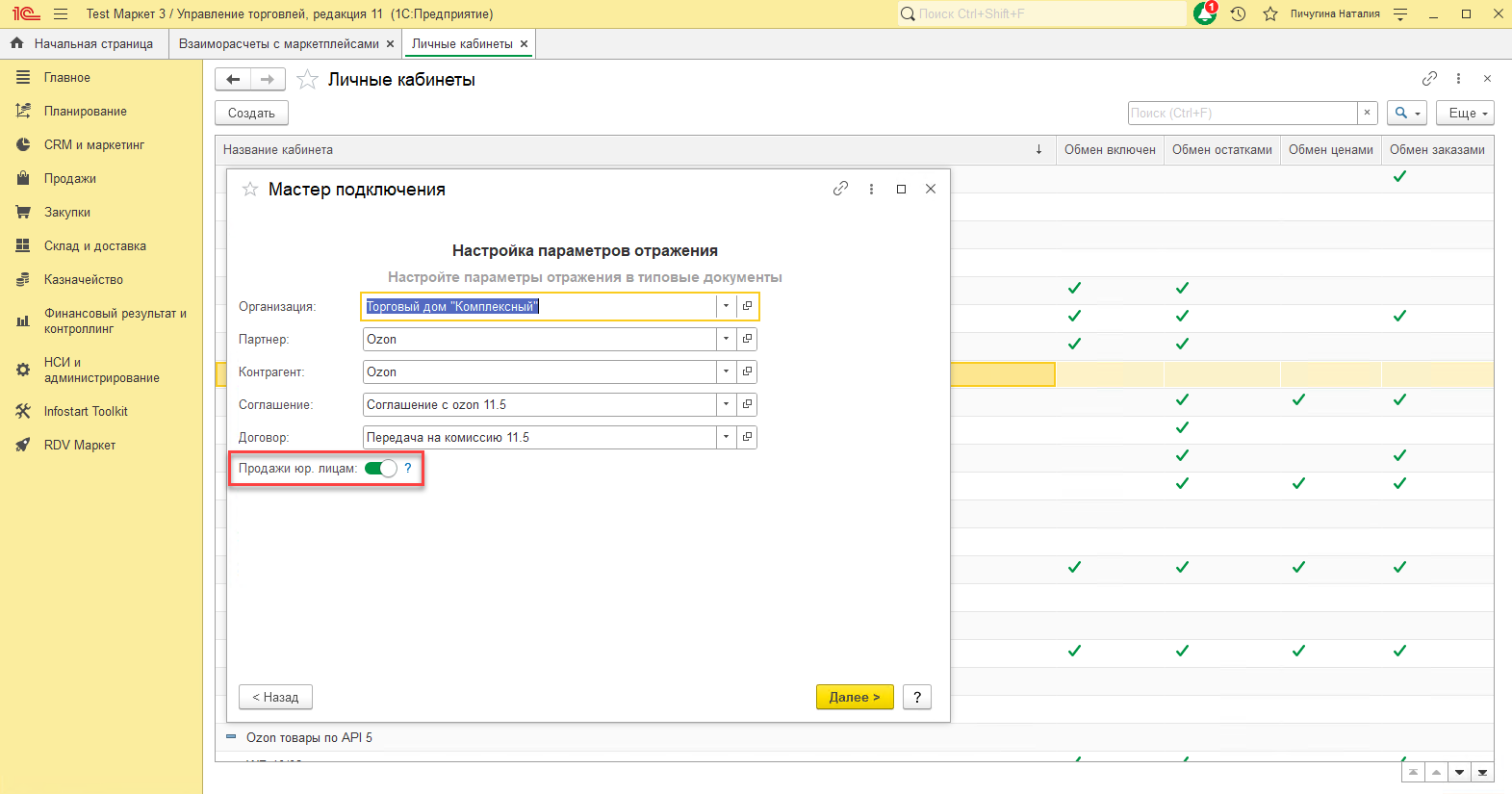 Отражение продаж юридическим лицам (Ozon)