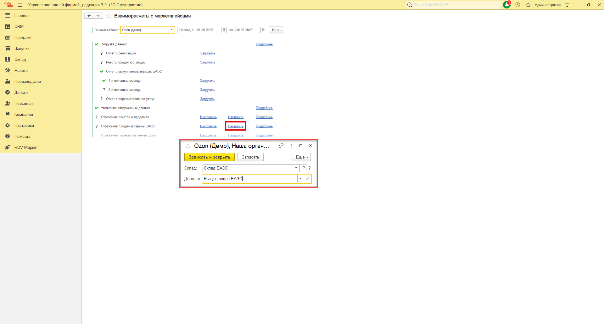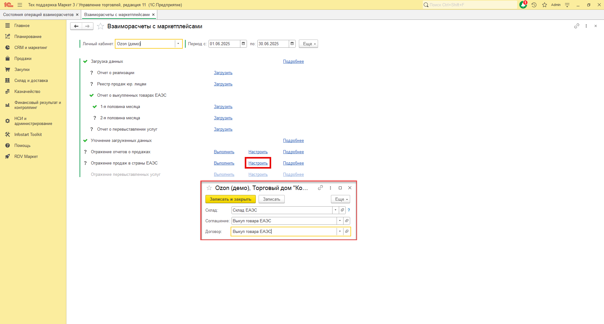 Настройка отражения продаж в страны ЕАЭС